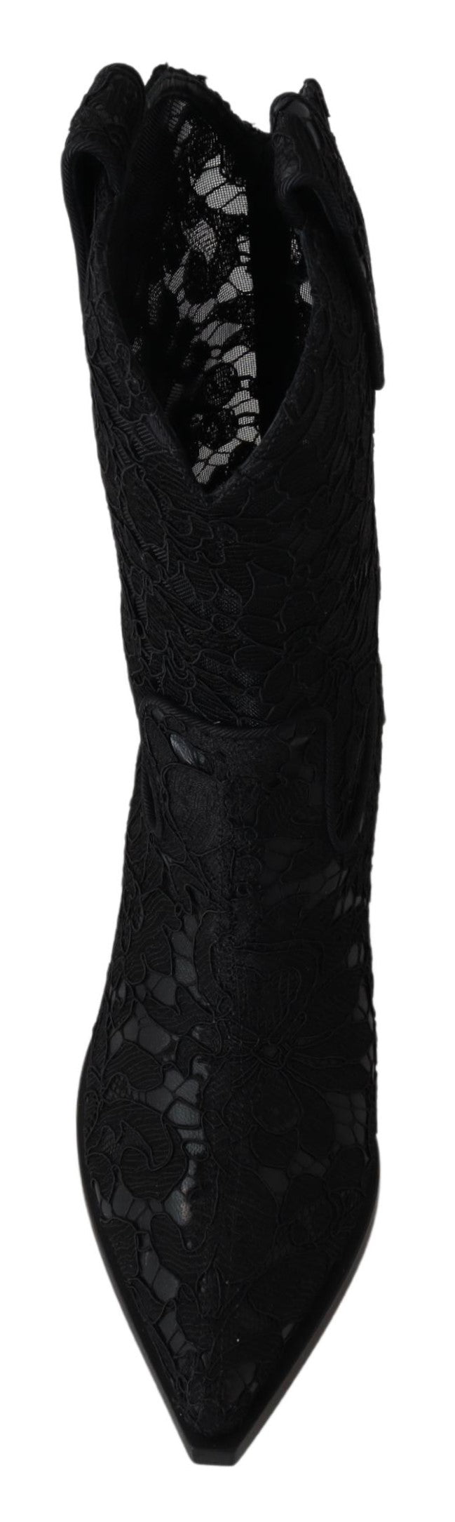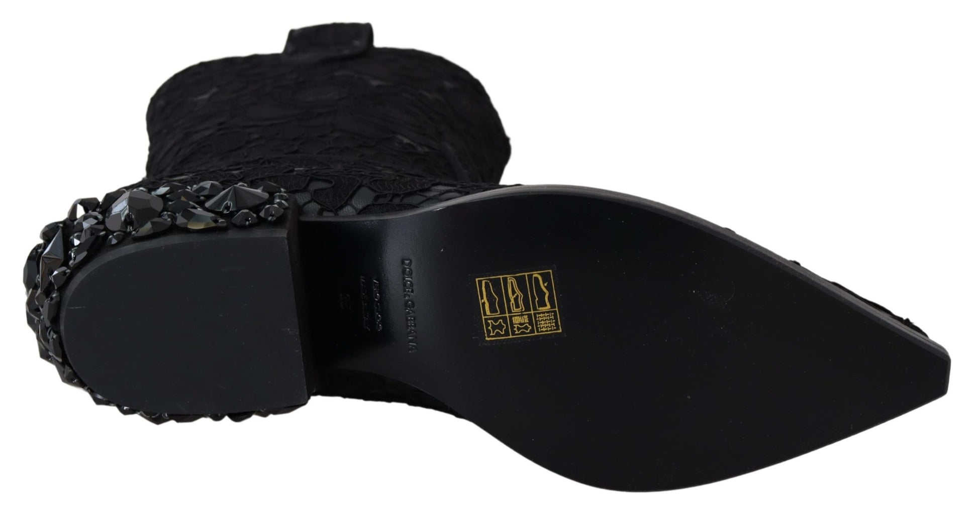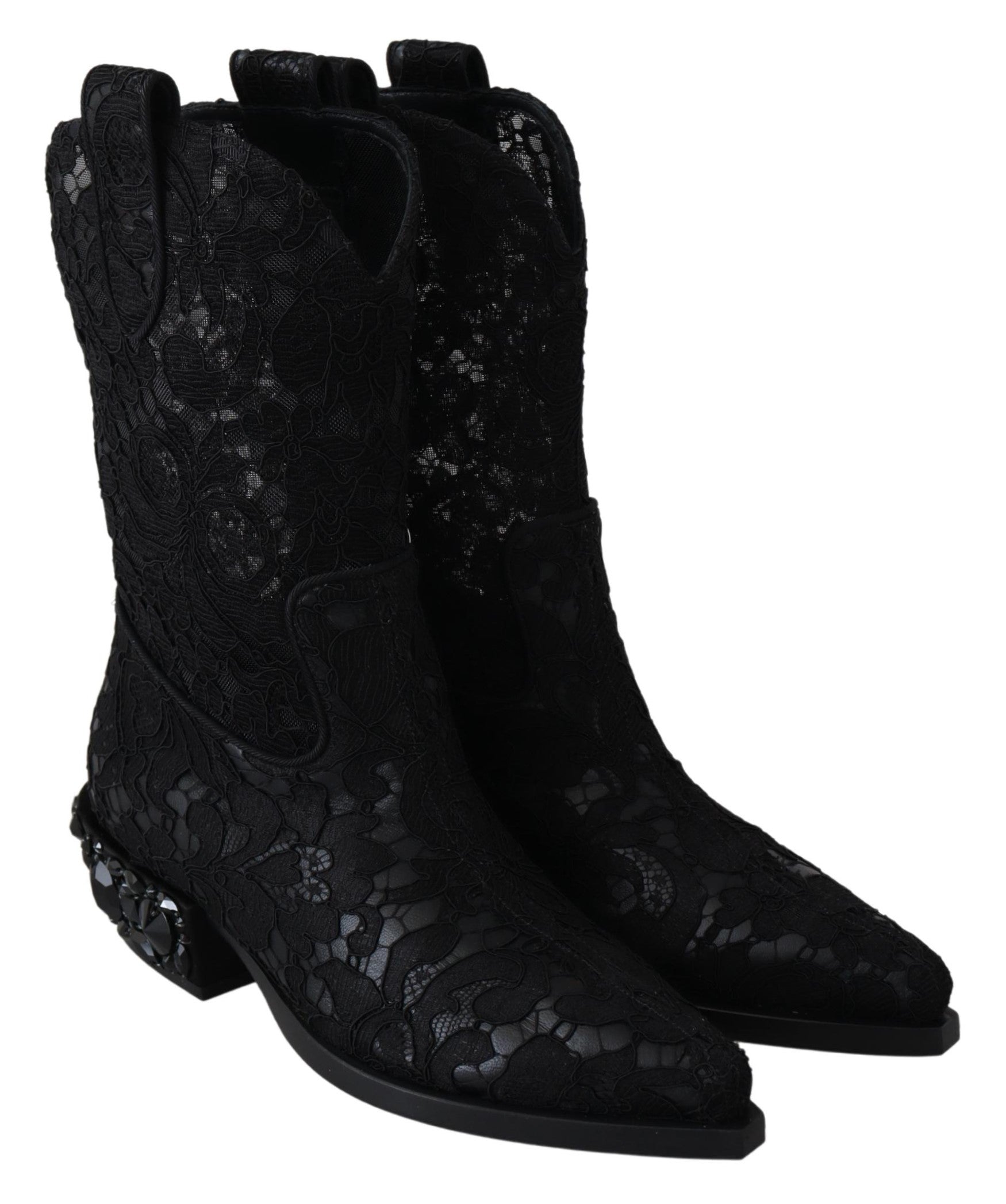 Schwarze Spitze Taormina Knöchel Cowboy Kristall Schuhe