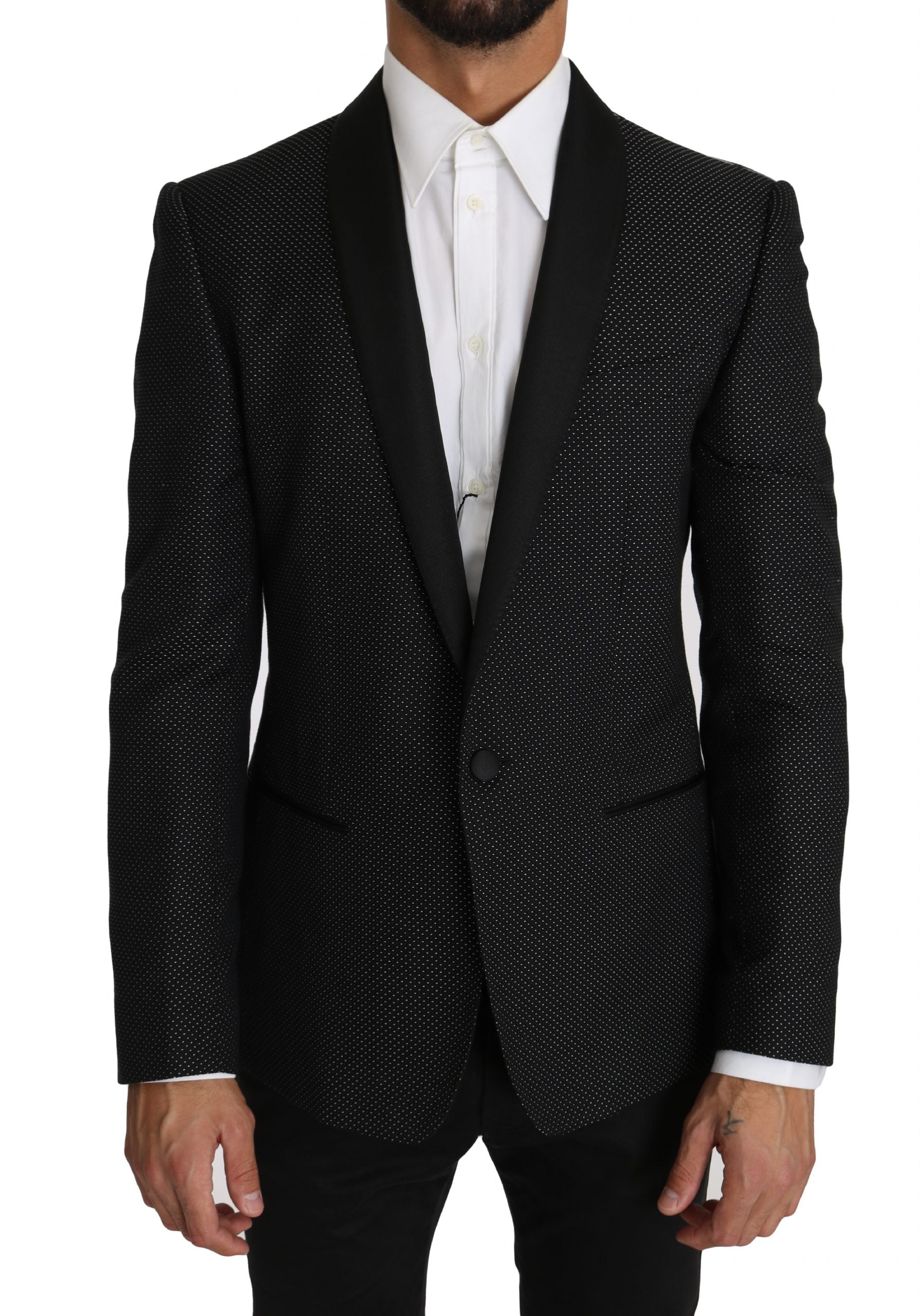 Schwarzer Blazer aus Baumwolle mit Punktmuster