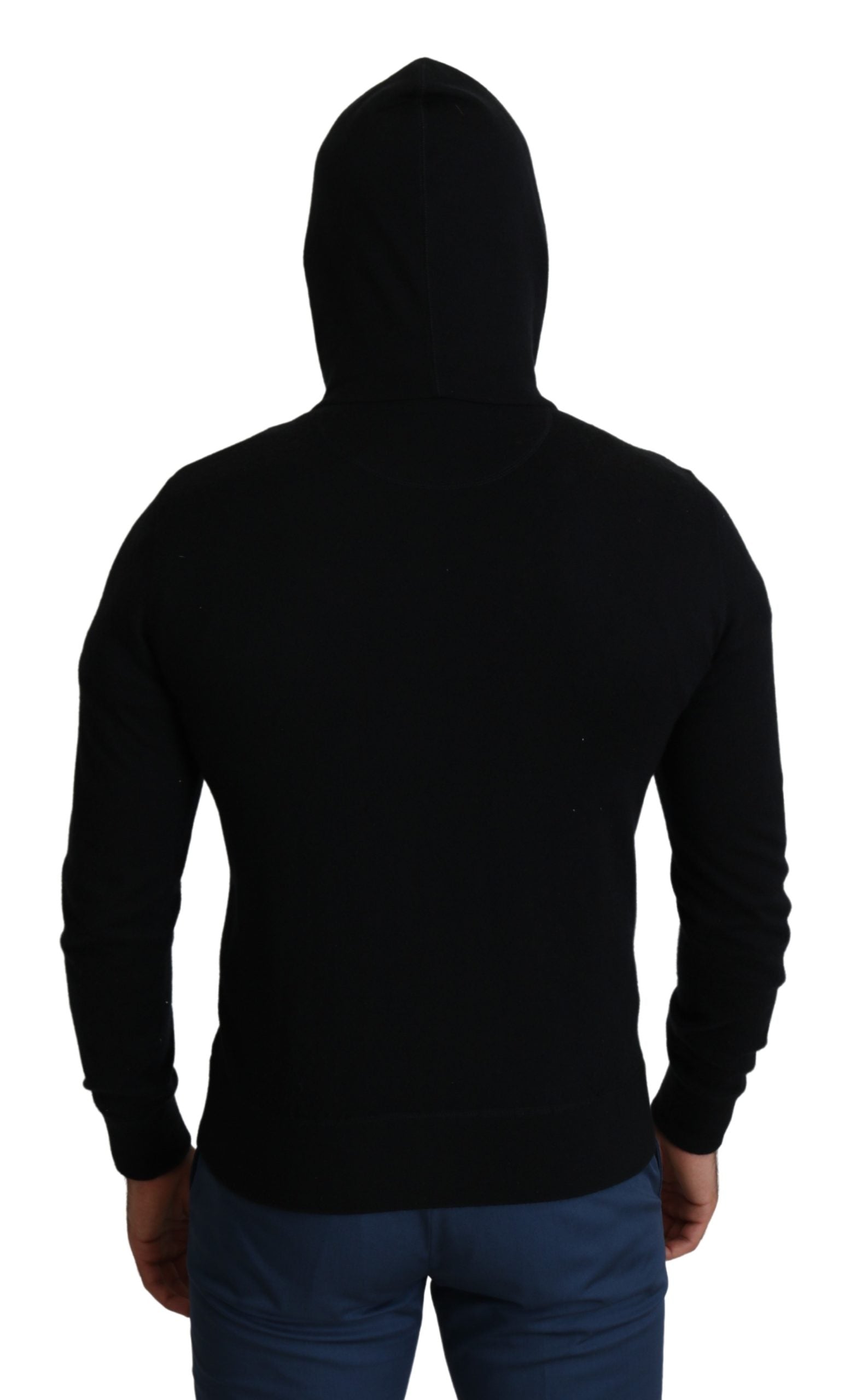 Schwarzer Kaschmirpullover mit Kapuze und Reißverschluss