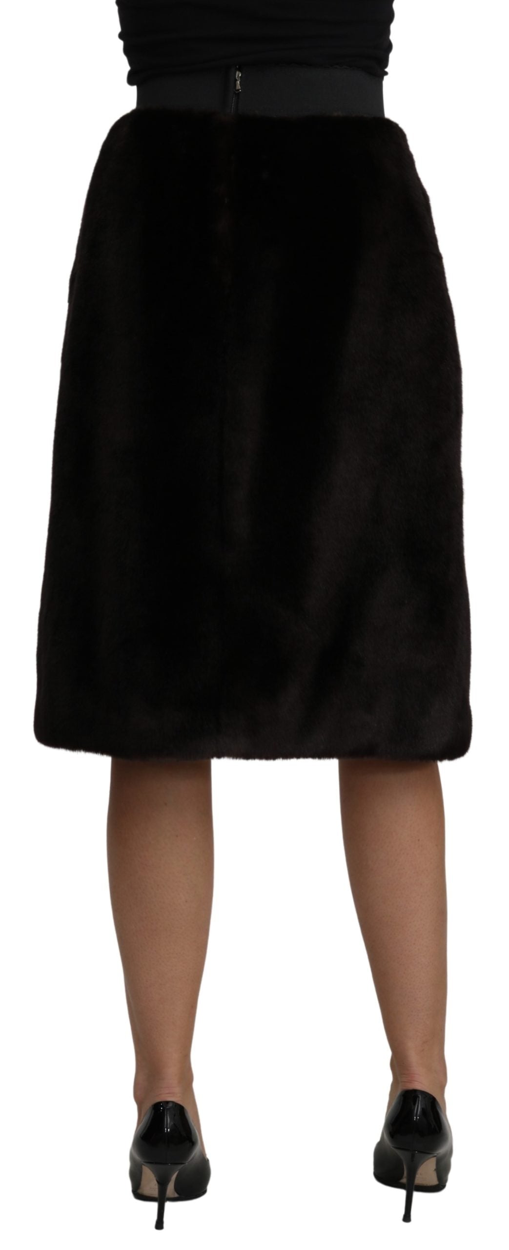 Schwarzer knielanger Rock mit hoher Taille und Bleistiftschnitt