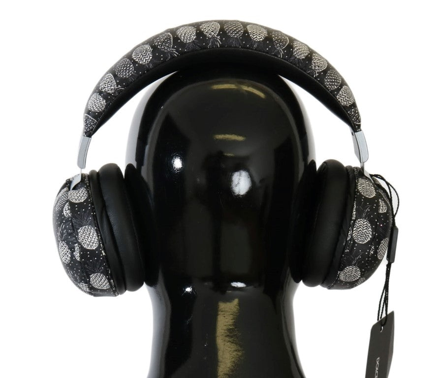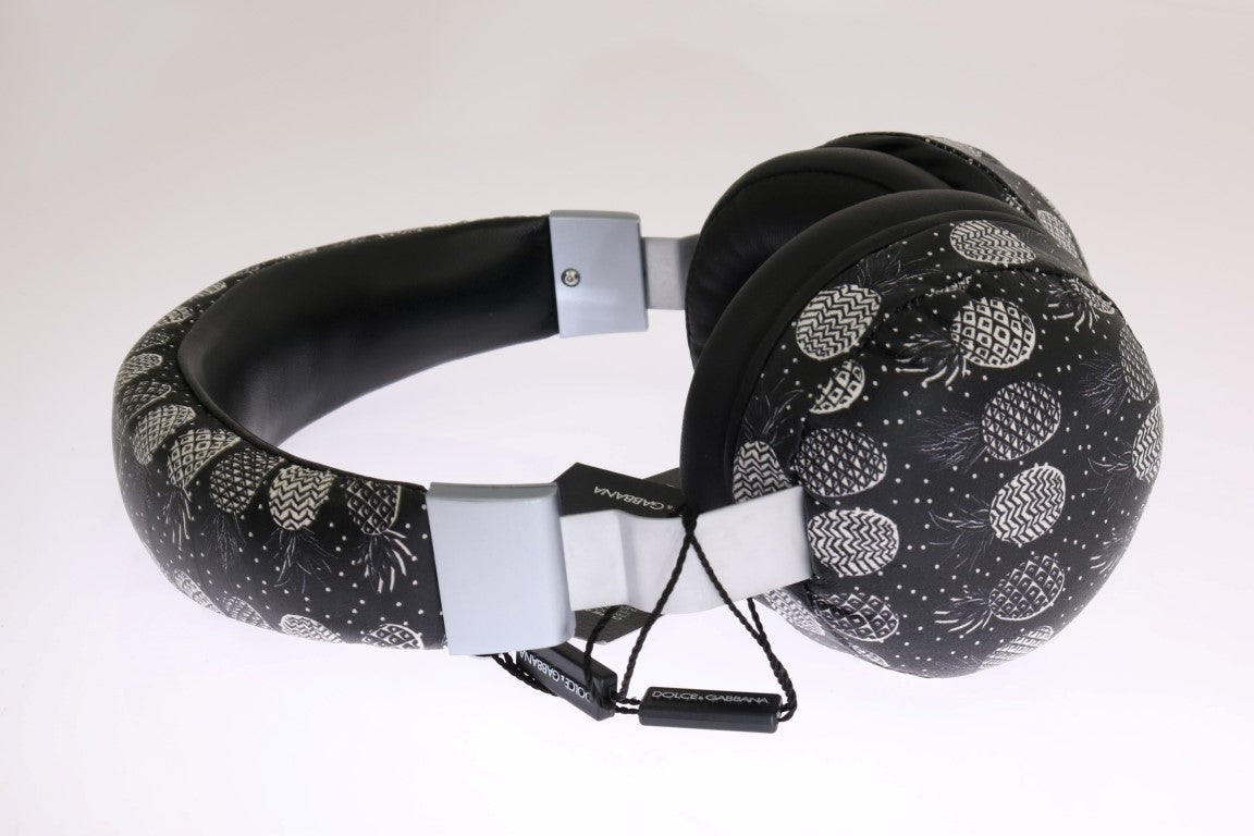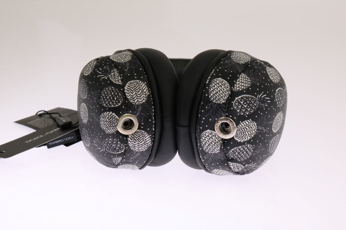 Absolut atemberaubend, 100% authentisch, ganz neu mit Tags Dolce & Gabbana schwarzAnanas Druck Leder Kopfhörer gesetzt.