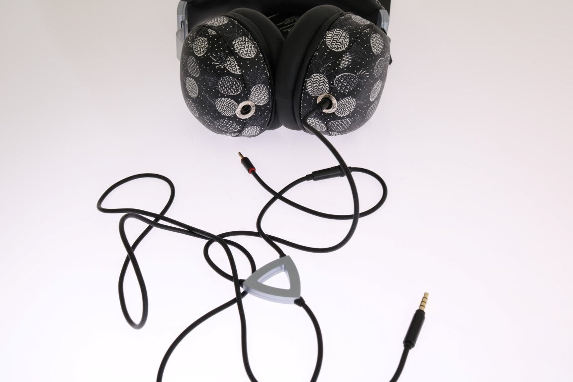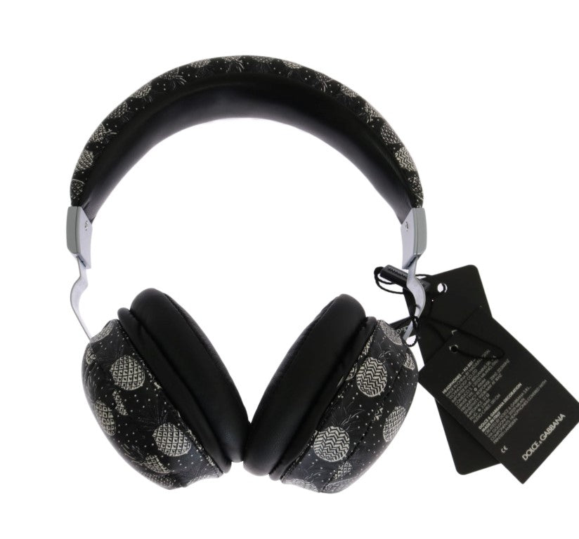 Schwarzer Kopfhörer mit Ananas-Print aus Leder