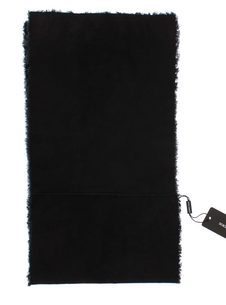 Schwarzer Lammschurwollschal aus Seide