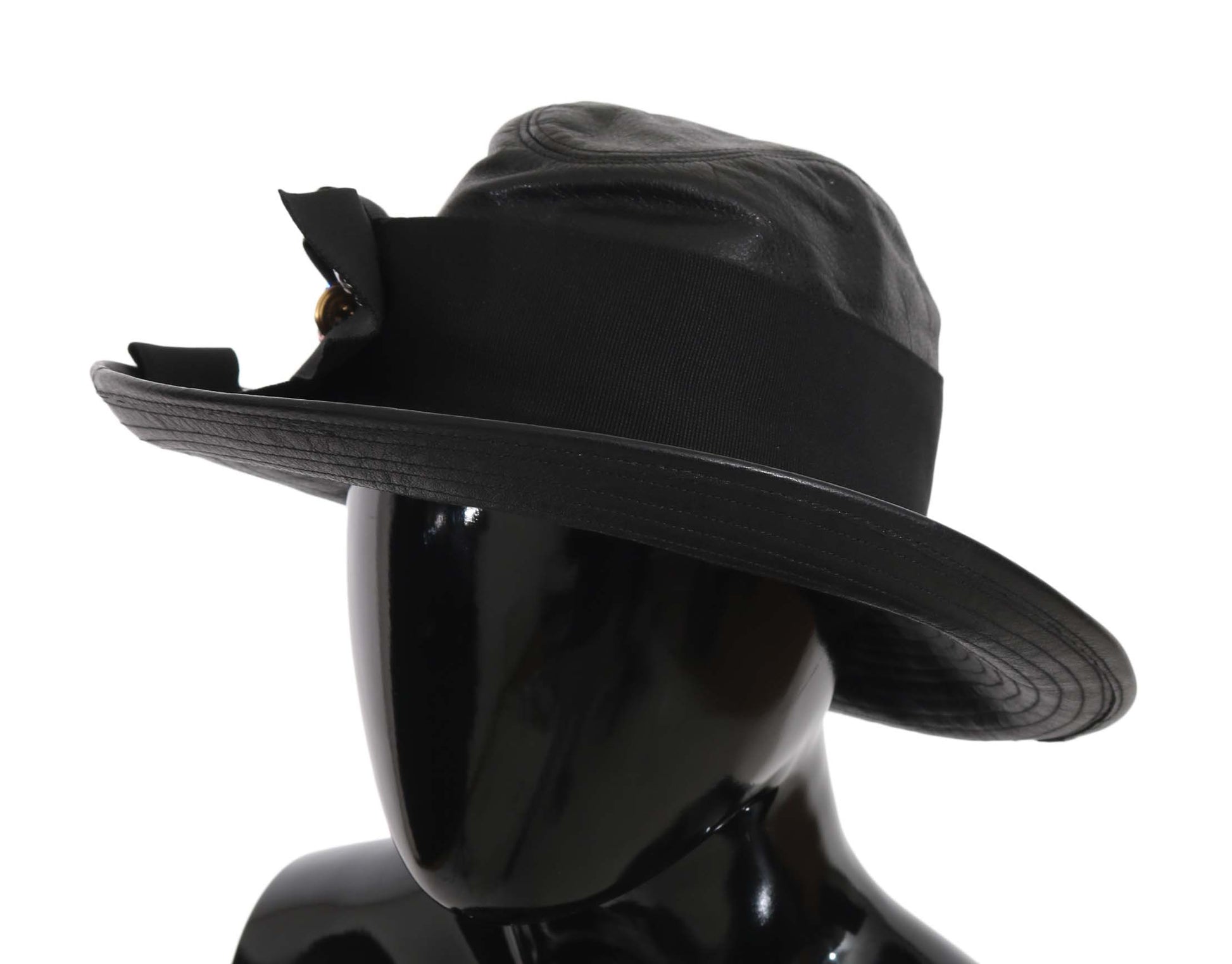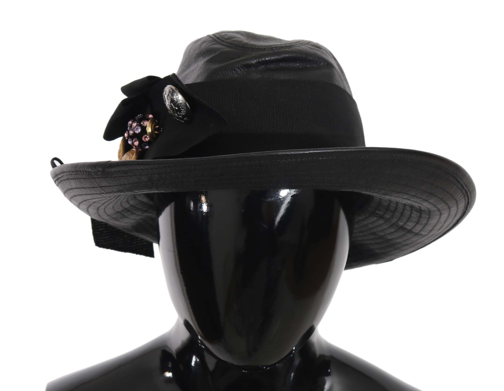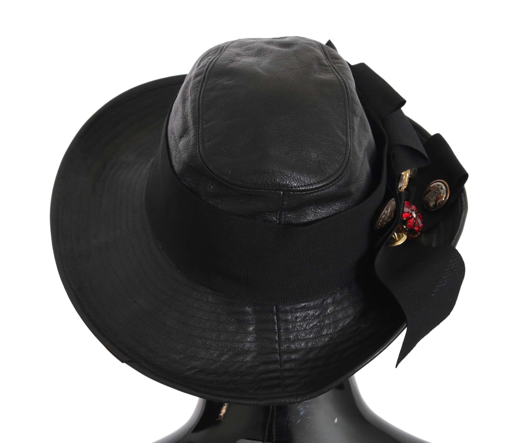 Schwarzer Leder Hut mit breiter Krempe DG Münze Kristall