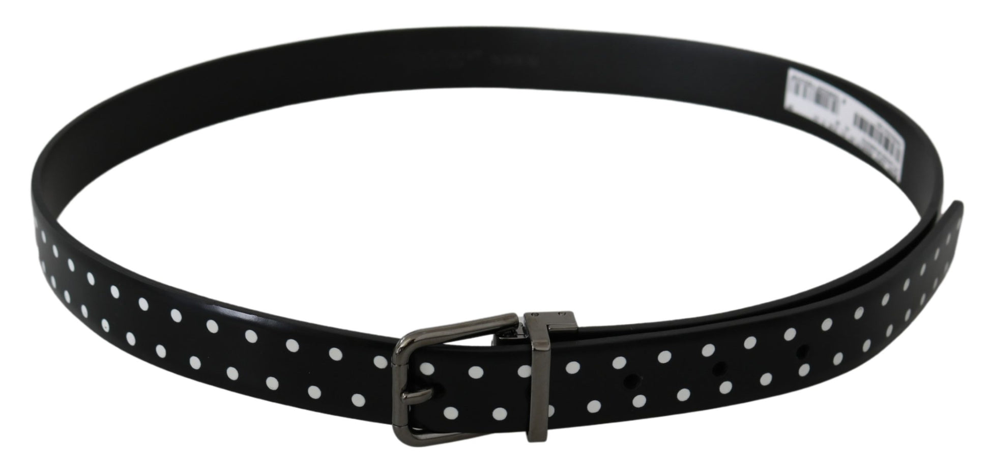 Schwarzer Leder Polka Dot Gray Schnallengürtel