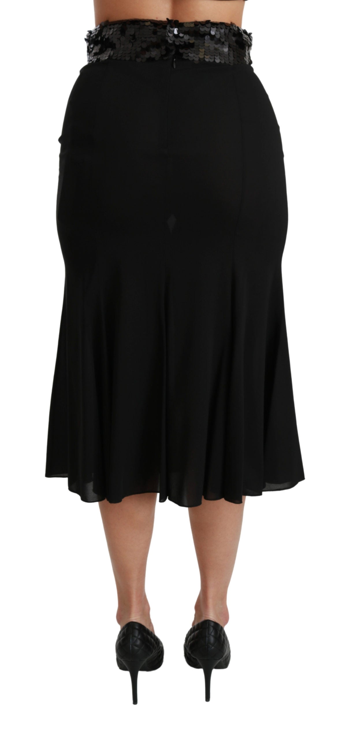 Schwarzer Midi-Seidenrock mit hoher Taille und Meerjungfrau