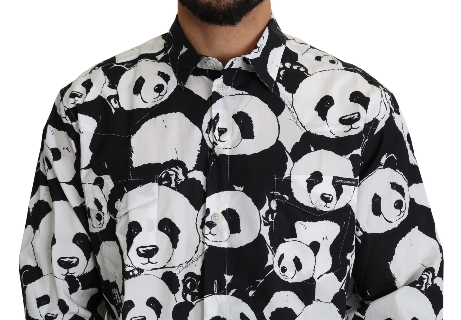 Absolut atemberaubend, 100% authentisch, ganz neu mit Tags Dolce & Gabbana Shirt mit schwarzen und weißen Panda Druck. Es ist aus weicher, leichter reiner Baumwolle gefertigt. Dieses Hemd hat einen Knopfverschluss vorne, lange Ärmel, geknöpfte Manschetten, einen klassischen Ausschnitt und eine doppelte Brusttasche.