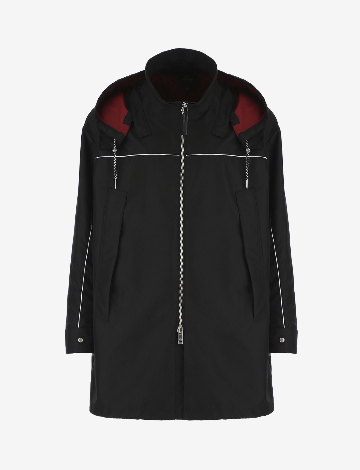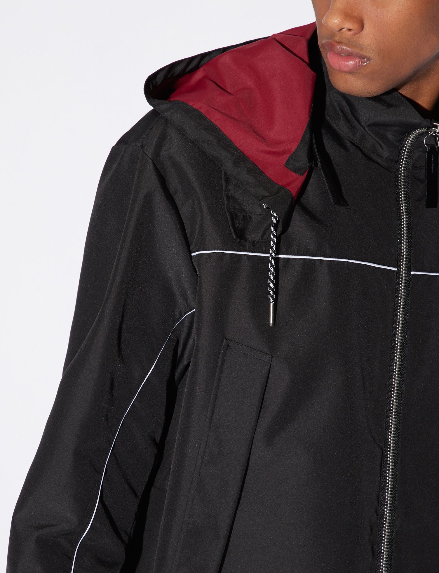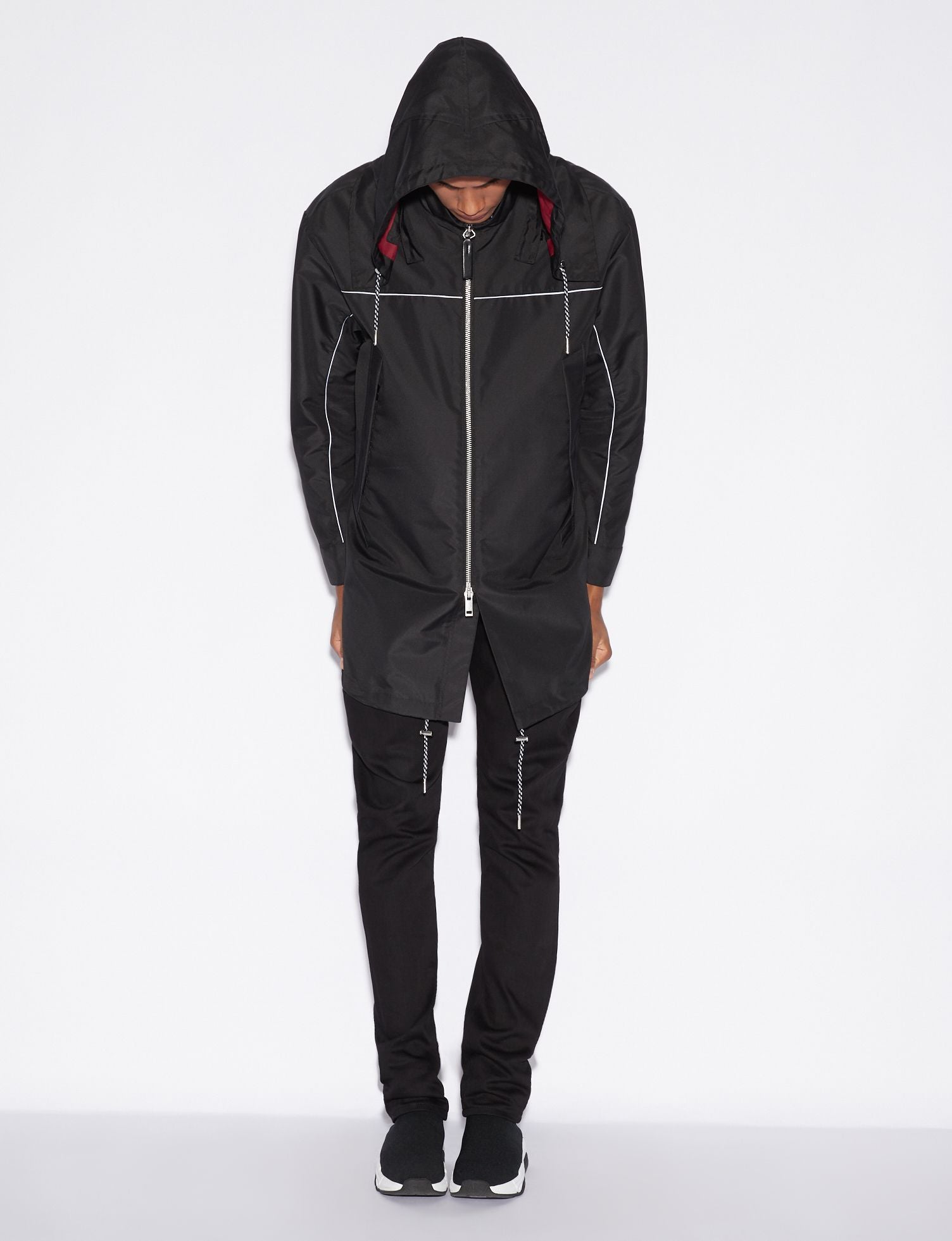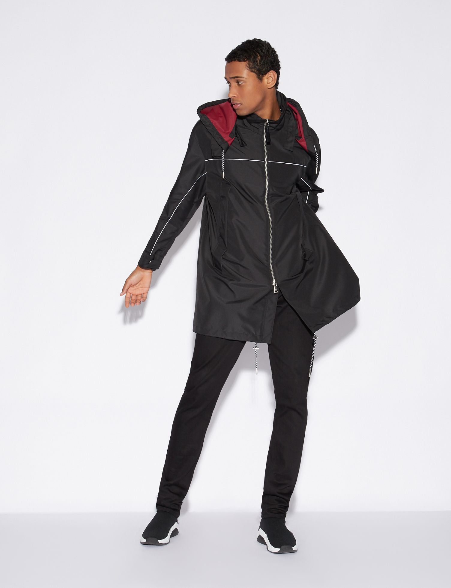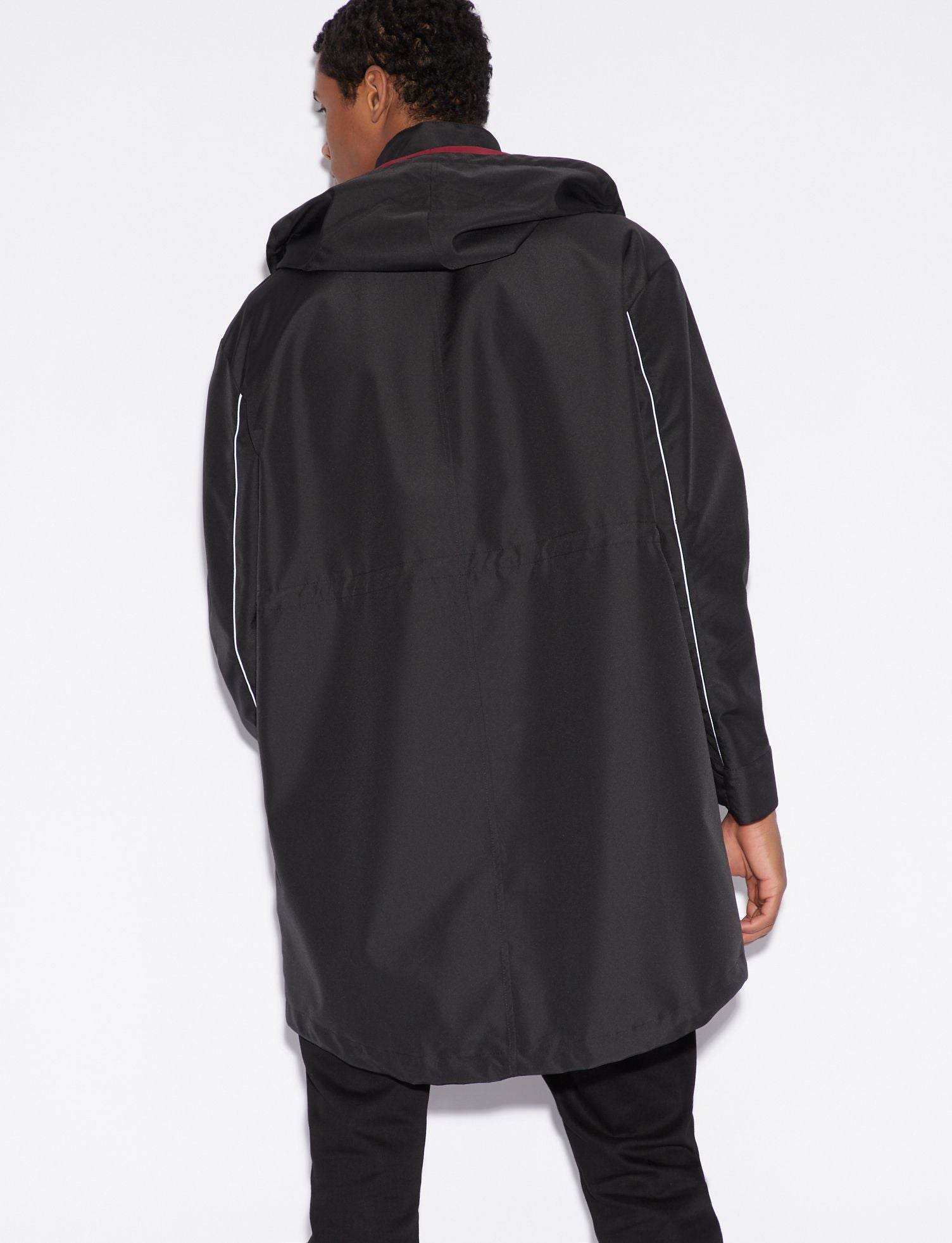 Armani Exchange Trenchcoat mit Kapuze, schwarz, rote Kapuze, Doubleface.