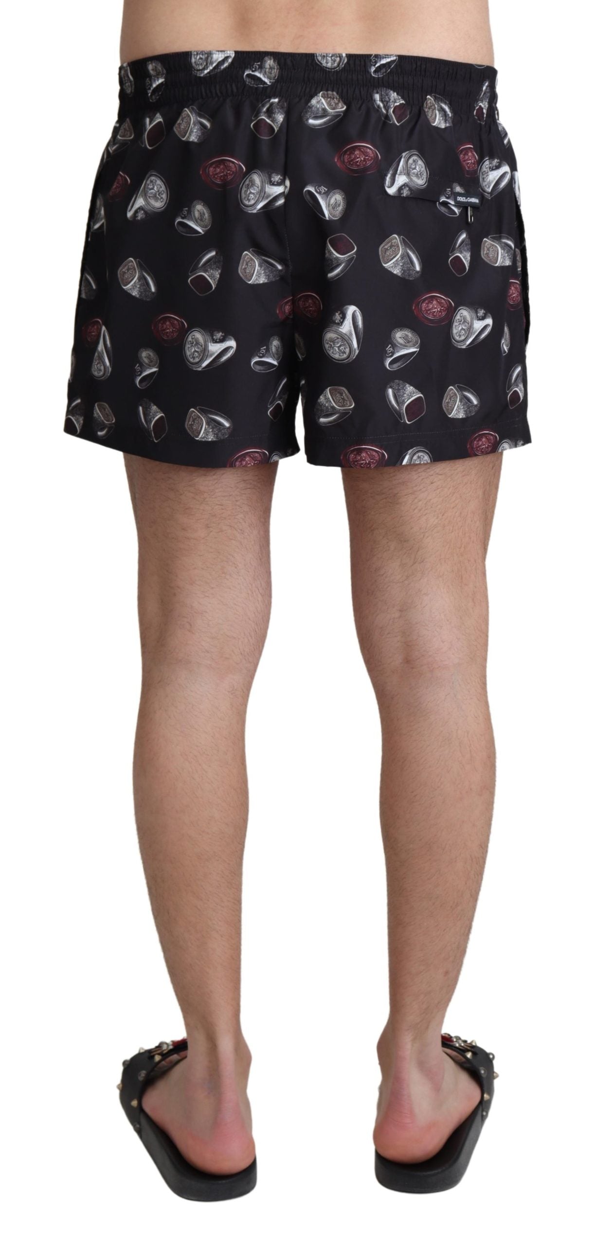 Schwarzer Ring Print Beachwear Shorts Bademode