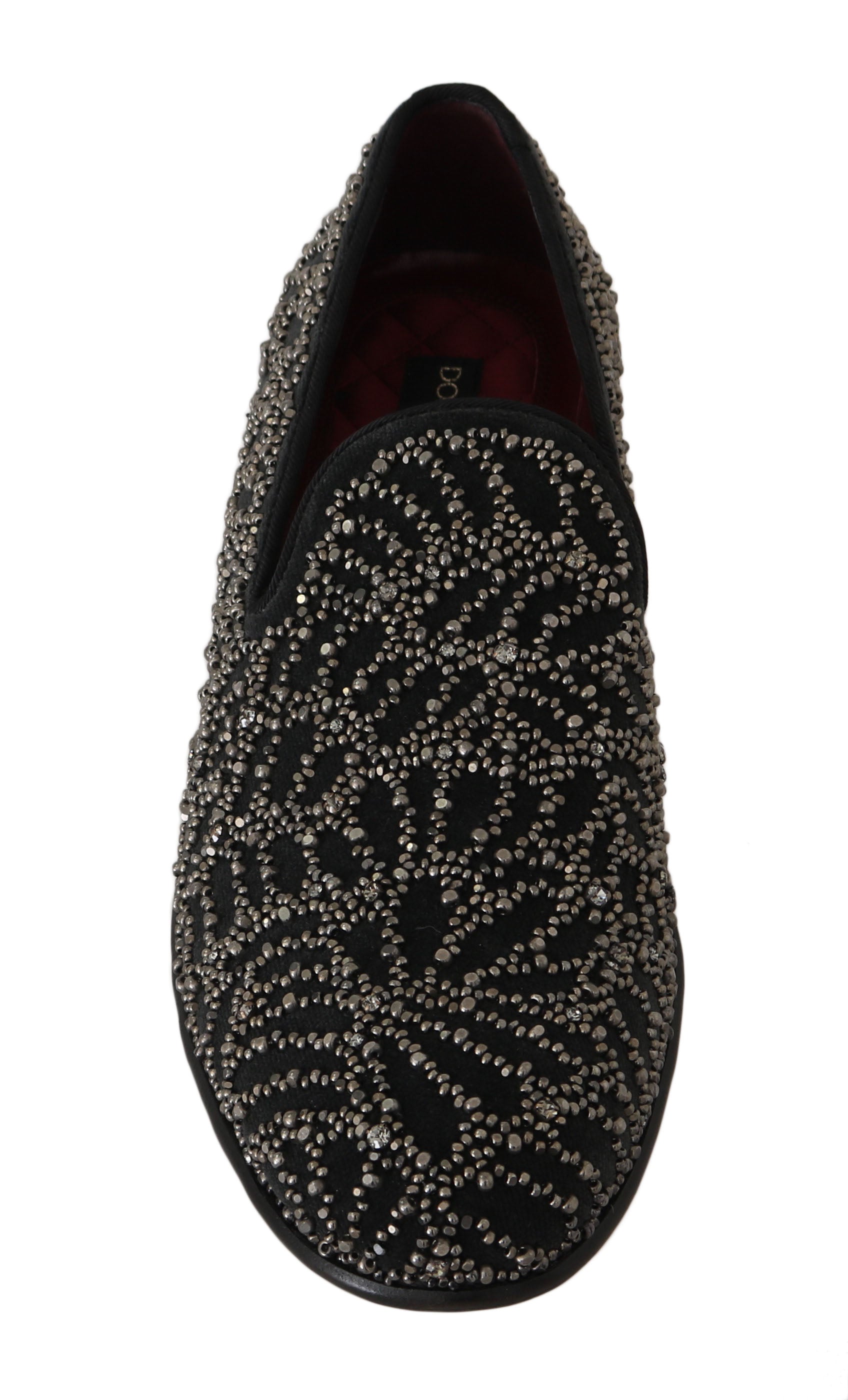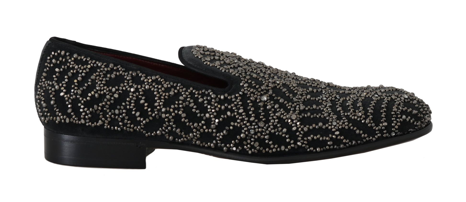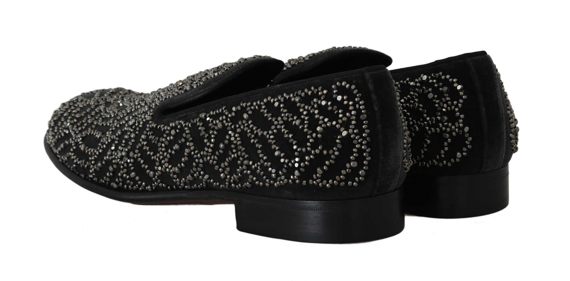 Schwarzer Samt Kristall Perlen Loafers