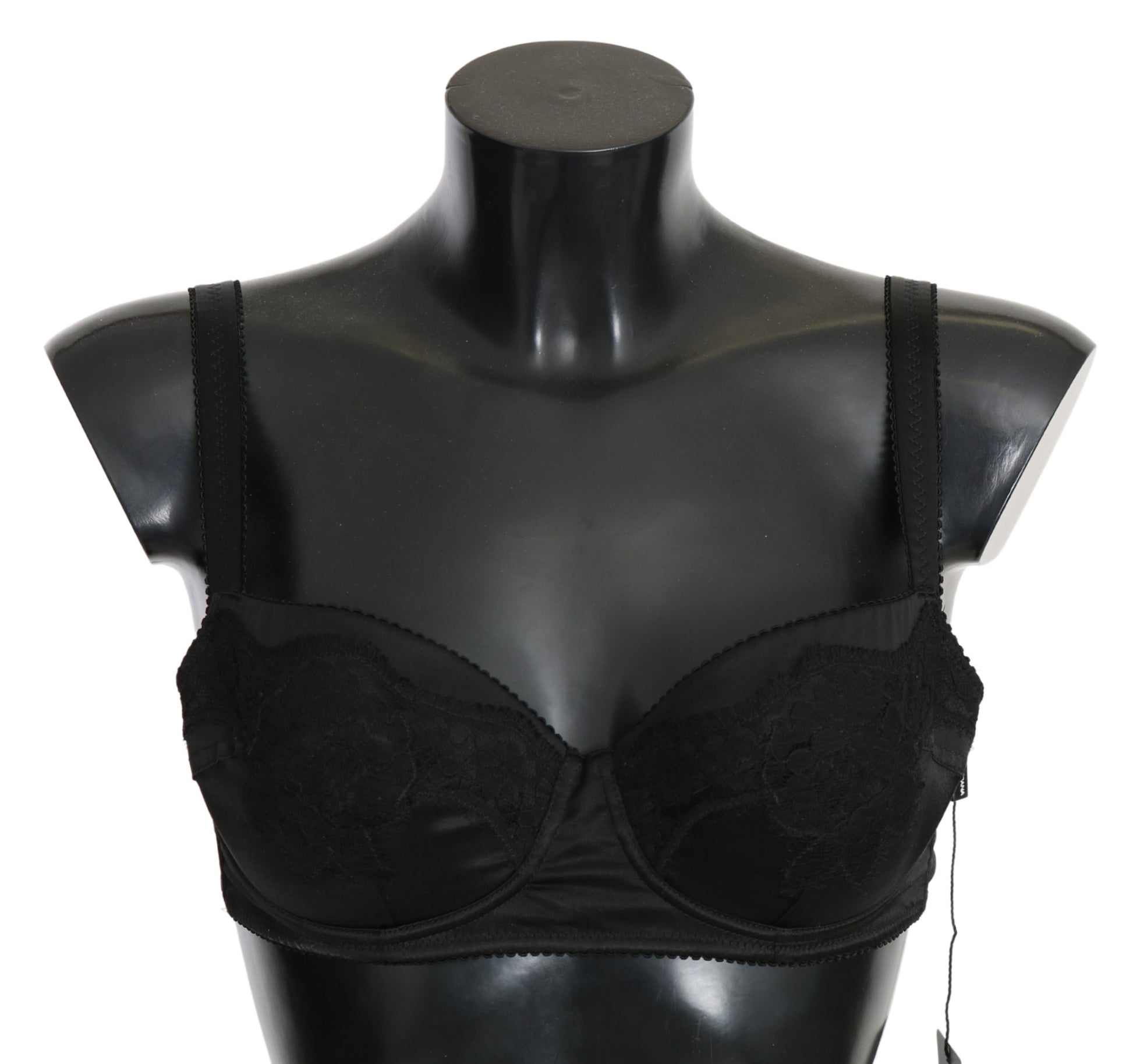 Schwarzer Spitze Frauen Seide Stretch BH Unterwäsche