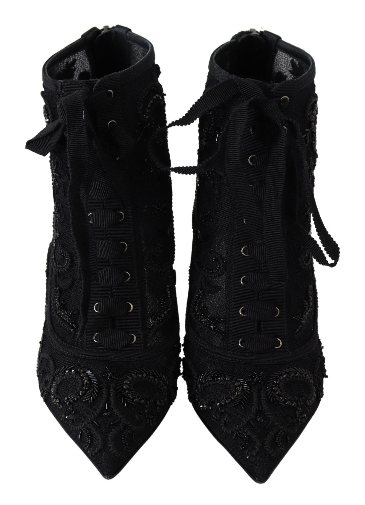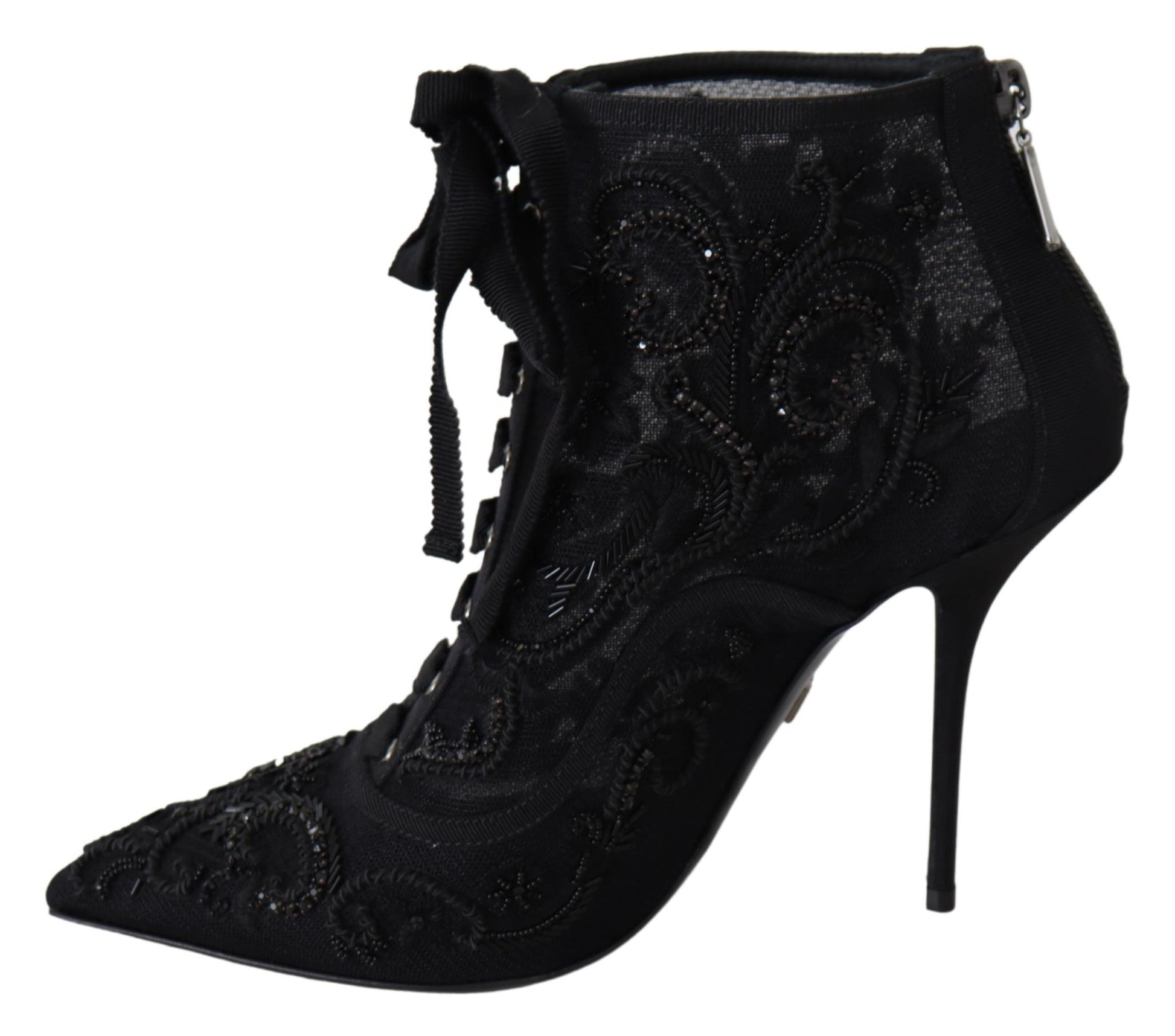 Wunderschöne, brandneue mit Tags 100% Authentic Dolce & Gabbana Schwarze Tüll-Stiefel. Das Modell ist aus strapazierfähigem Polyester gefertigt. Ausgestattet mit einer Schnürung und Reißverschluss.