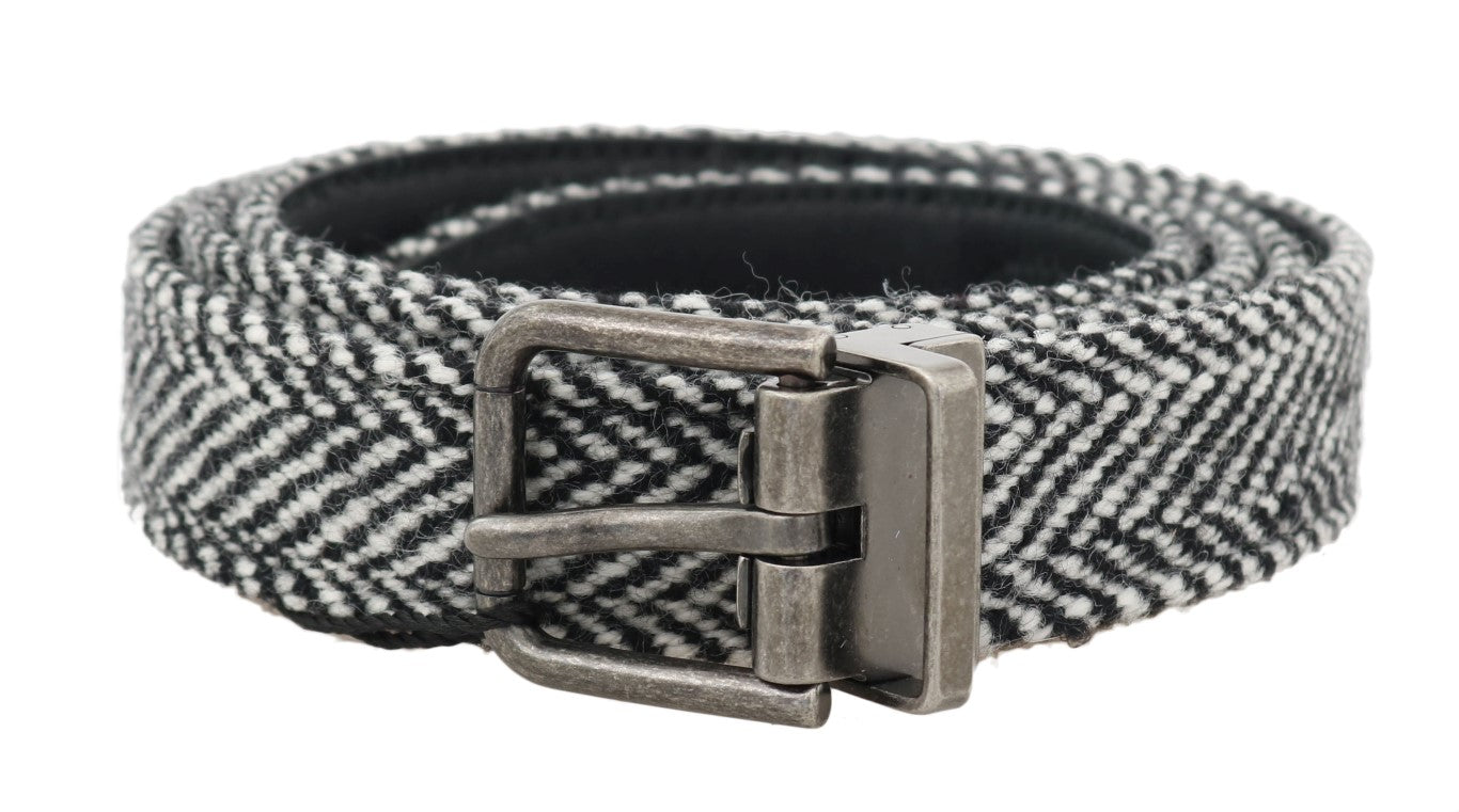 Schwarzer weißer Chevron-Woll-Ledergürtel