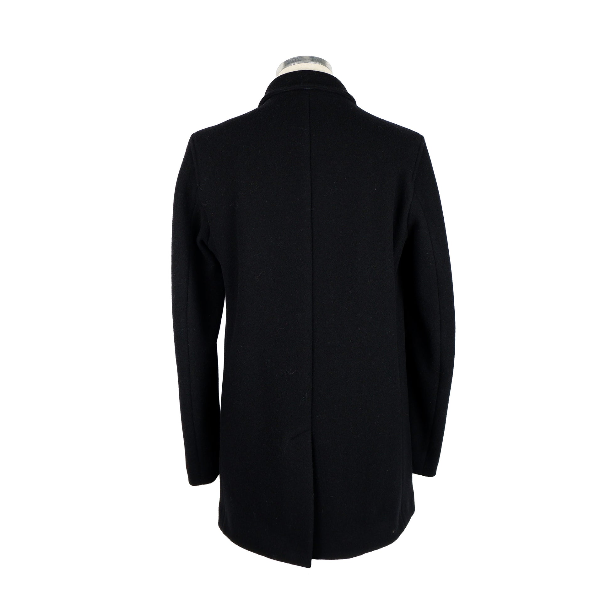 Schwarzer Wollmantel mit Knopfverschluss