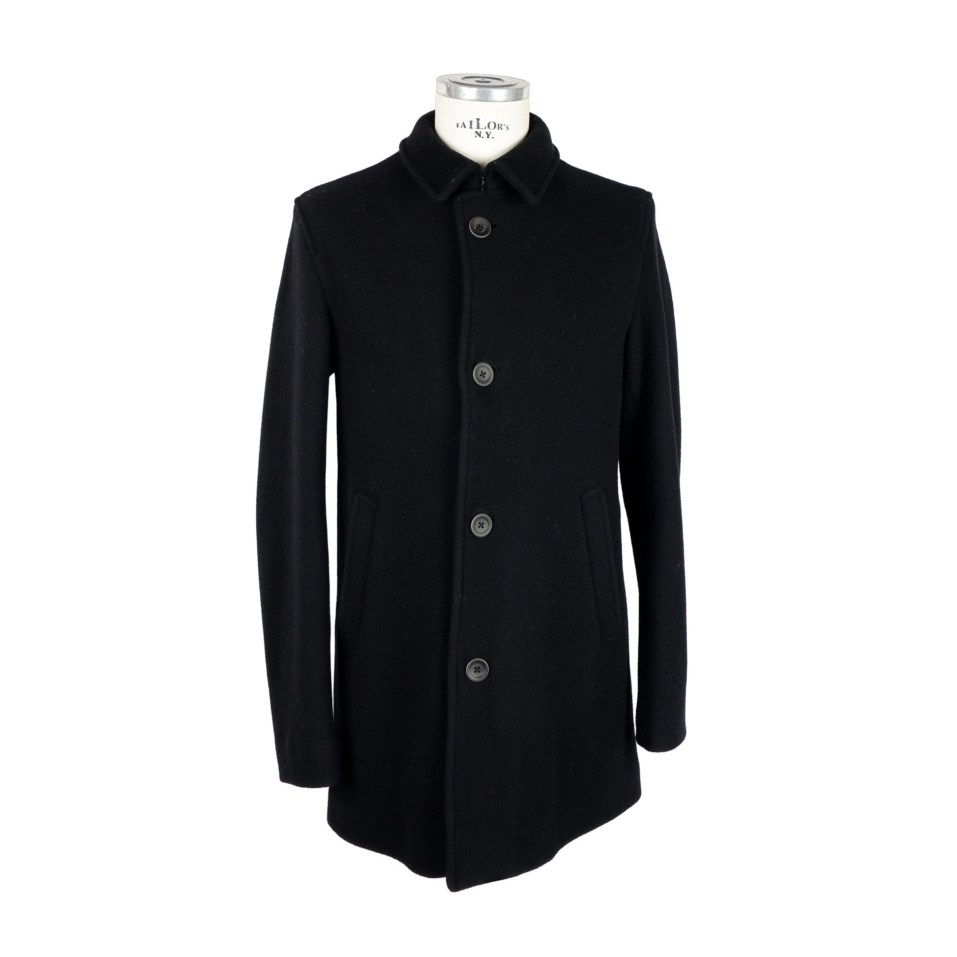Herno Wollmantel mit Knopfverschluss. Schlitztaschen vorne und Innentaschen mit Knopf. In Italien hergestellt
