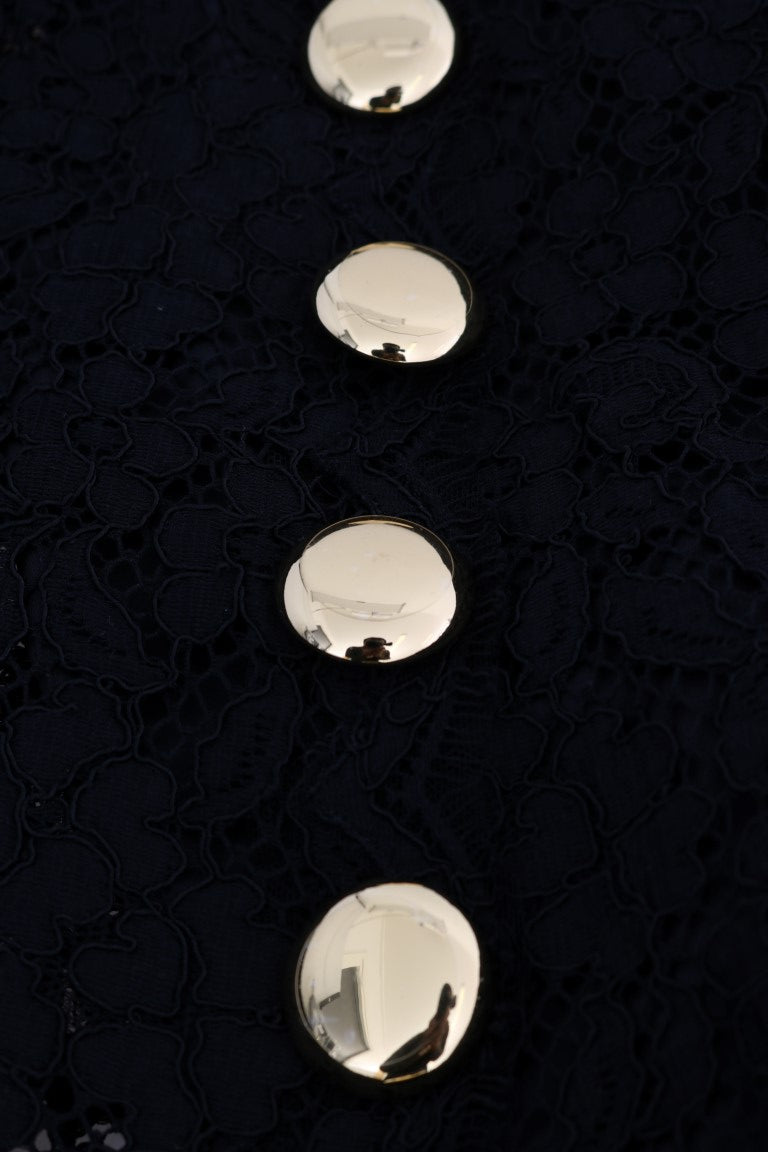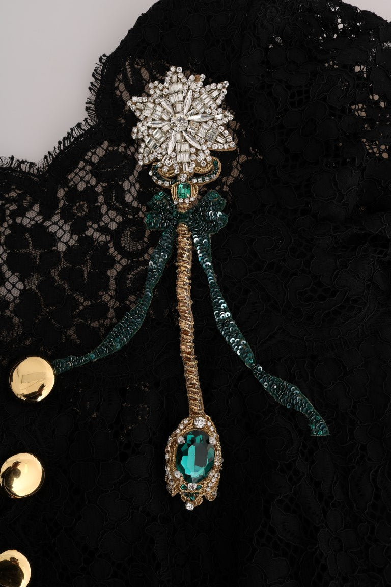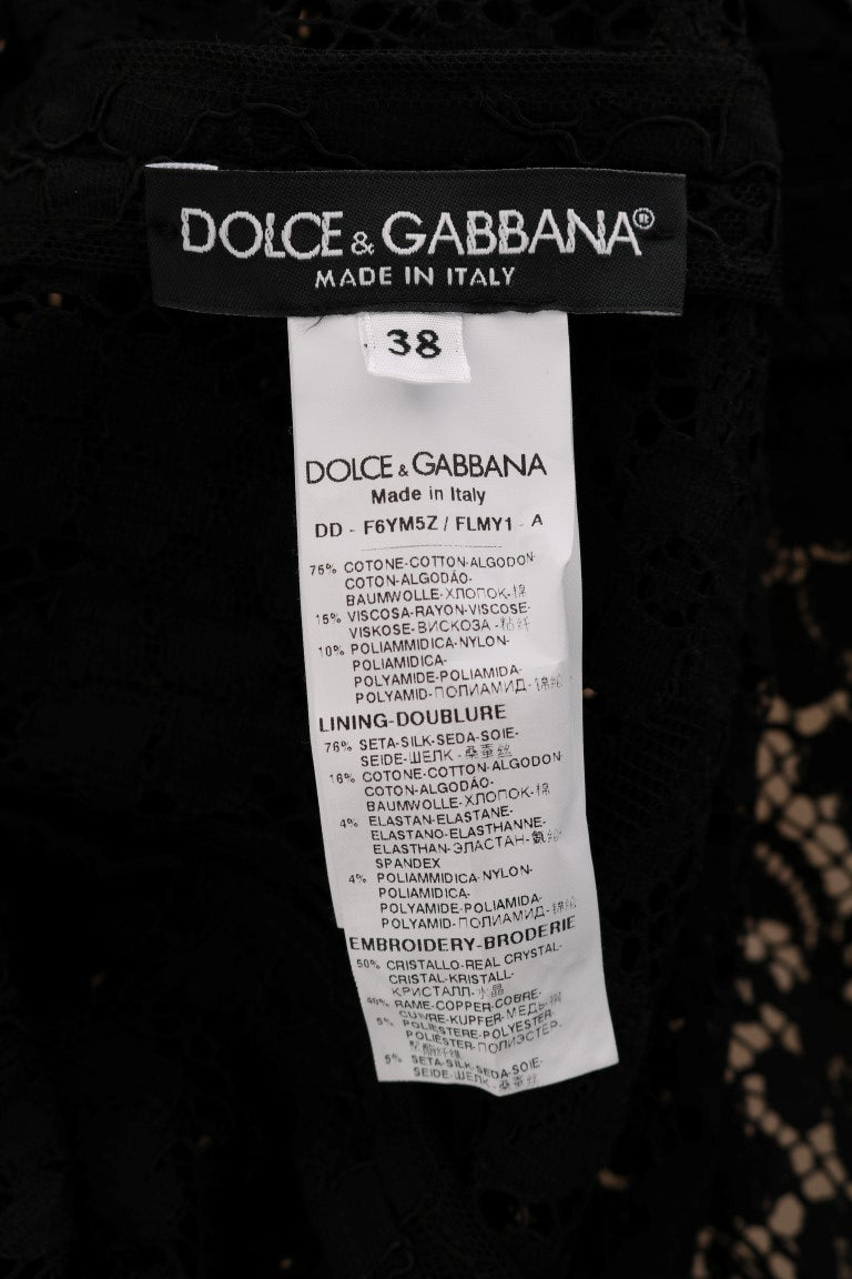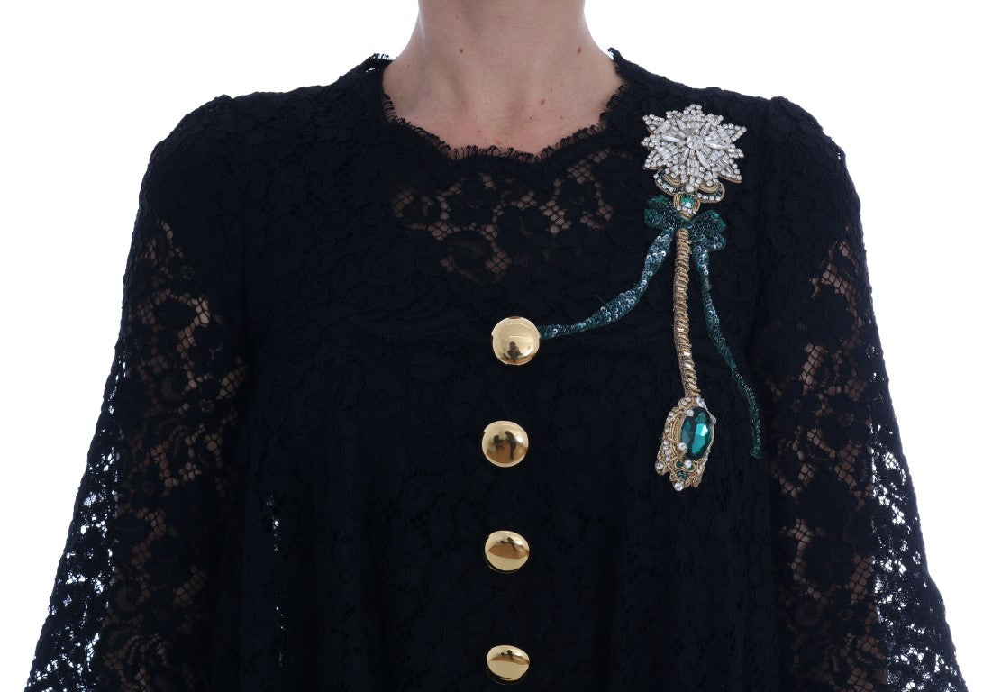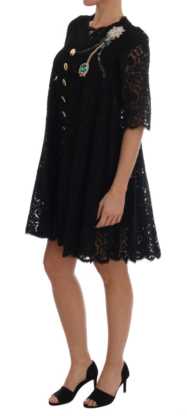 Wunderschöne brandneue mit Tags, 100% Authentic Dolce & Gabbana schwarz A-Linie Spitzenkleid mit Kristall-Details und goldenen Tasten.