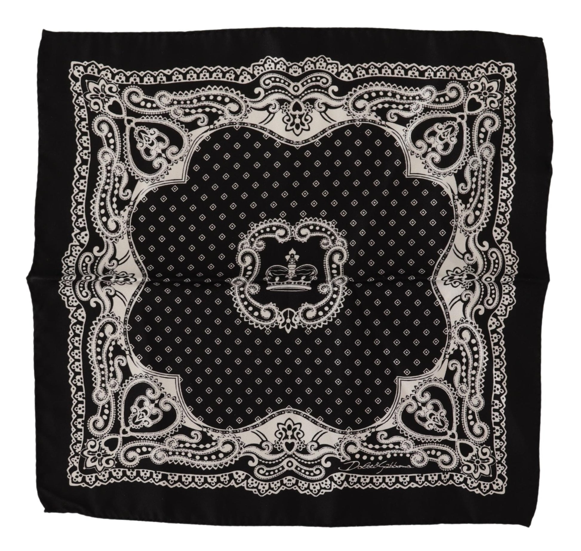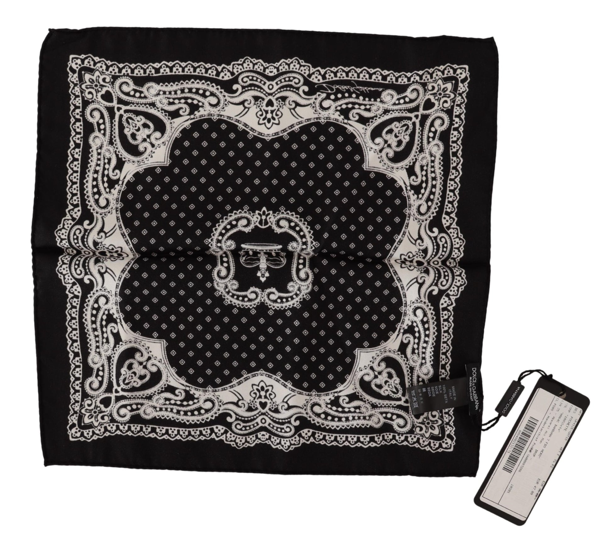 Wunderschöne brandneu mit Tags, 100% Authentic Dolce & Gabbana schwarzes Einstecktuch mit Muster. Hergestellt aus Seide.