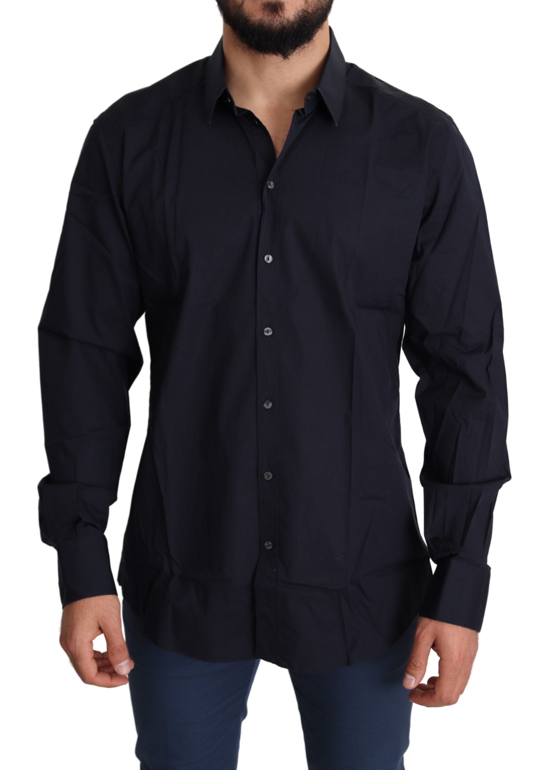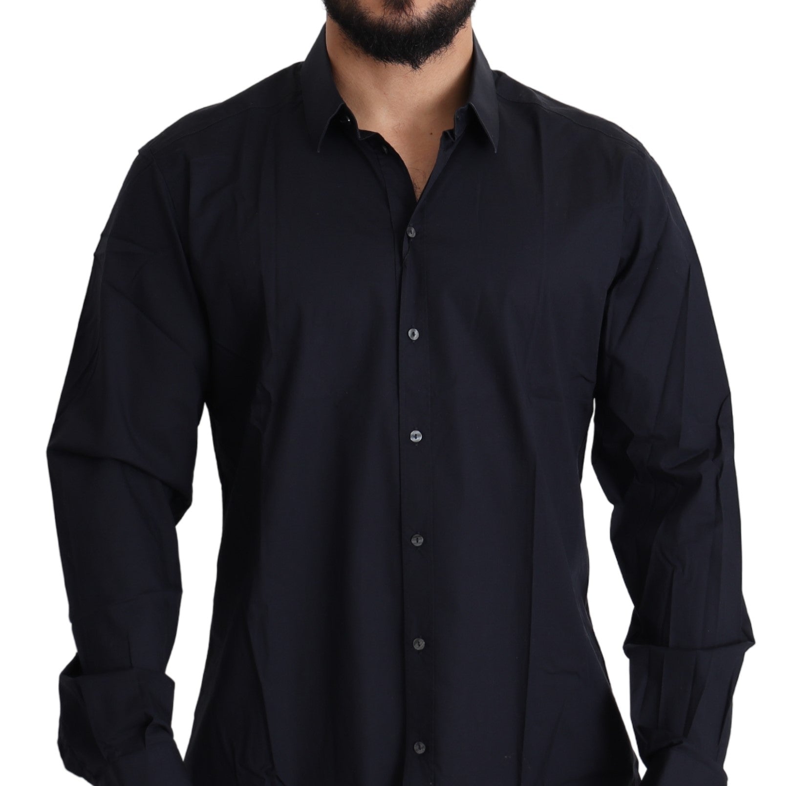 Absolut atemberaubend, 100% authentisch, brandneu mit Tags Dolce & Gabbana Schwarzes GOLD-Hemd aus feinem, weichem Baumwollstretch. Mit Stehkragen und einknöpfigen Manschetten.