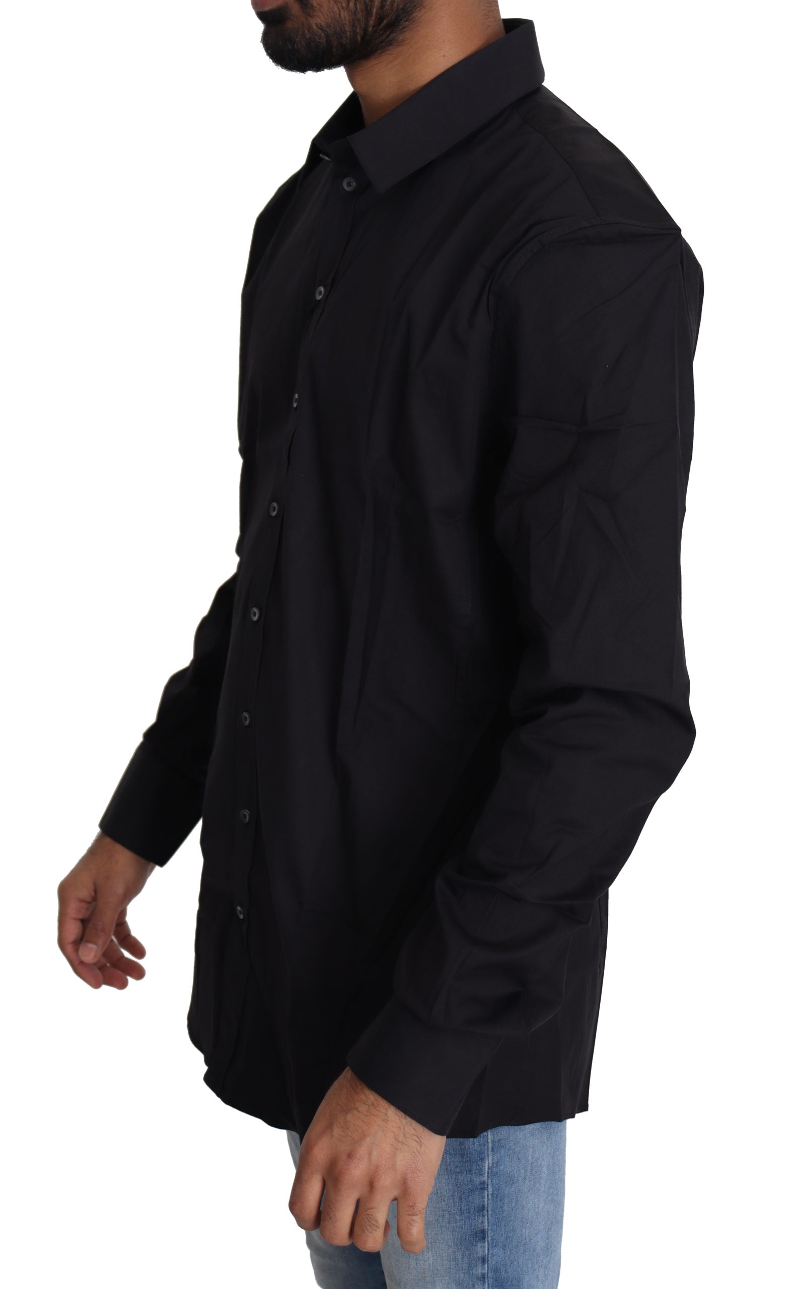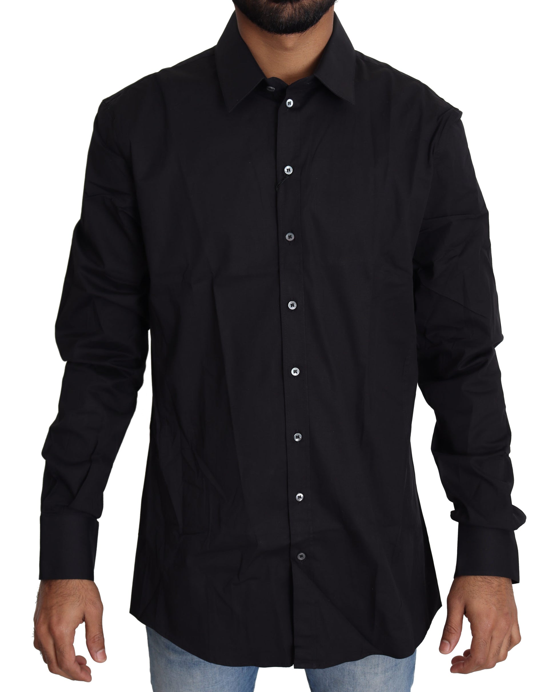 Absolut atemberaubend, 100% authentisch, brandneu mit Tags Dolce & Gabbana SICILIA Slim Fit Hemd in Schwarz mit breitem Kragen und durchgehender Knopfleiste.