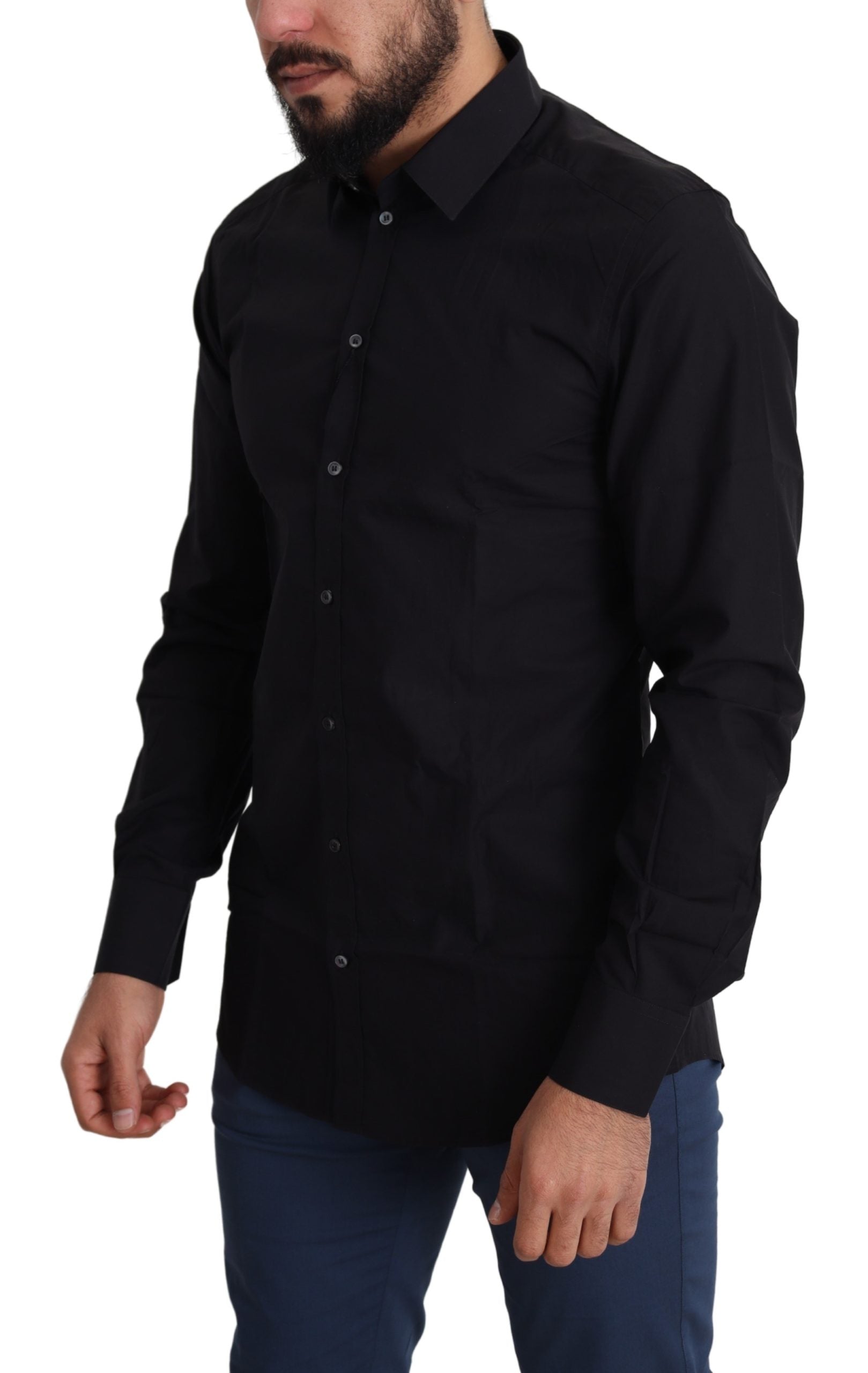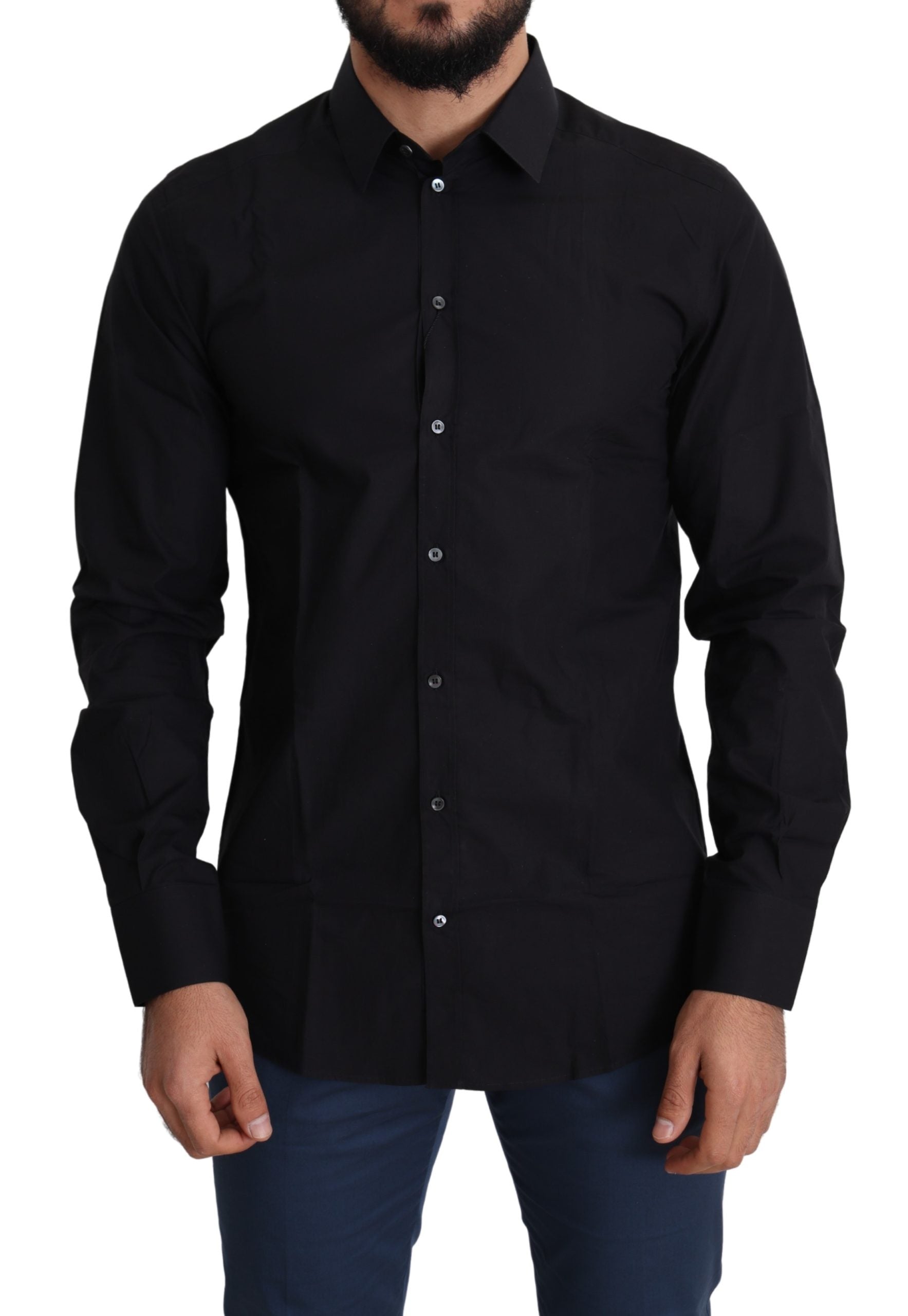 Absolut atemberaubend, 100% authentisch, brandneu mit Tags Dolce & Gabbana GOLD Schwarzes Hemd aus feiner, weicher Baumwolle. Es hat einen gespreizten Kragen und Manschetten mit einem Knopf.