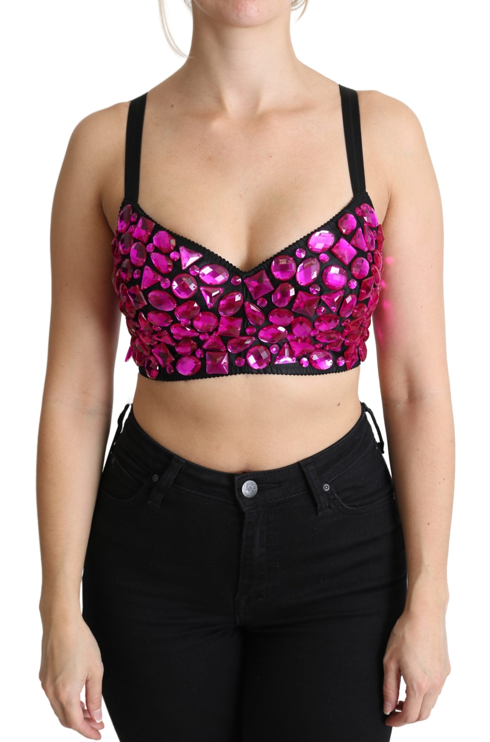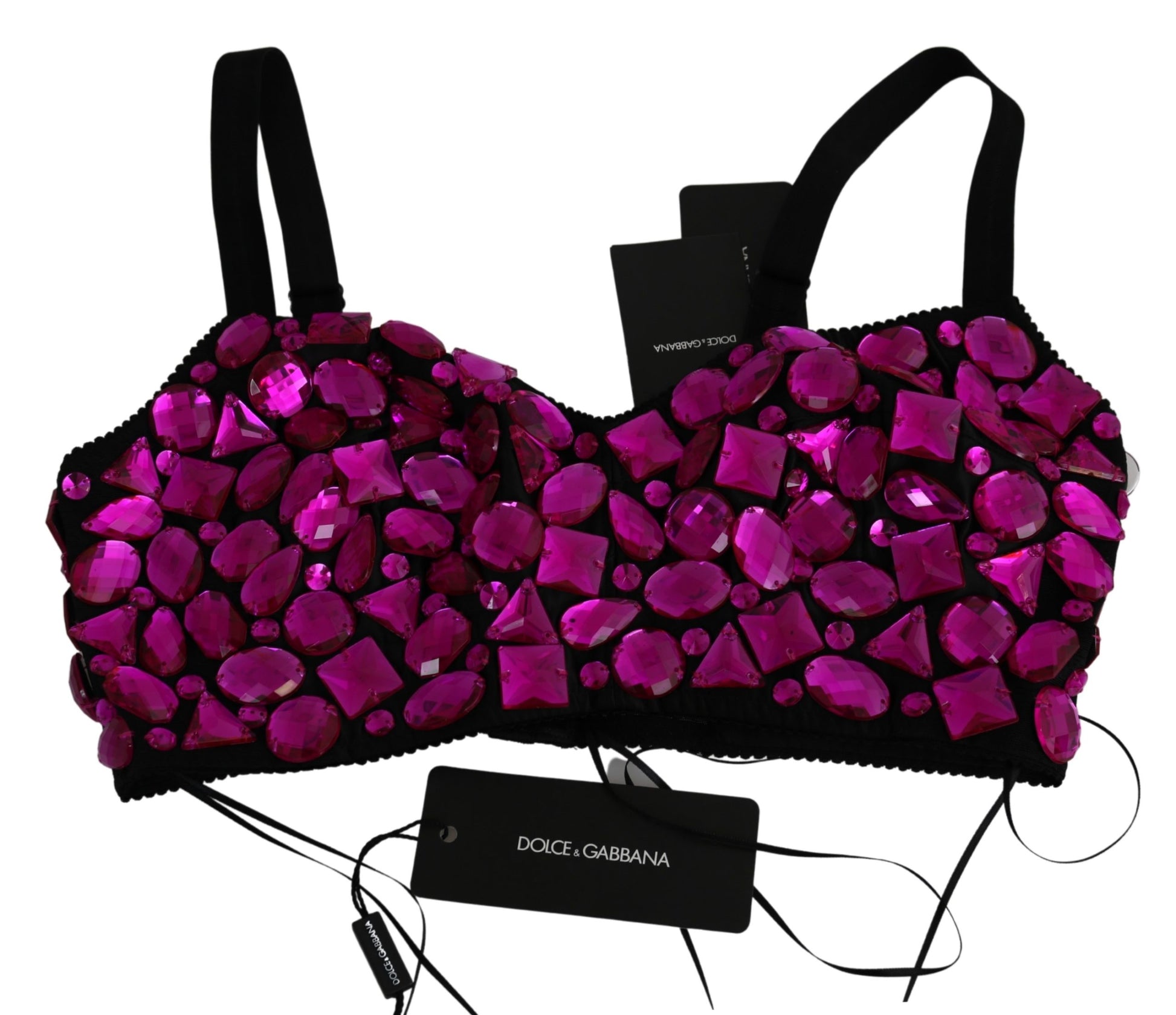 Wunderschönes, brandneues, 100% authentisches Dolce & Gabbana Crop-Top mit Kristallen. Dieses erstaunliche Bustier-Top ist mit fuchiafarbenen Kristallen besetzt.