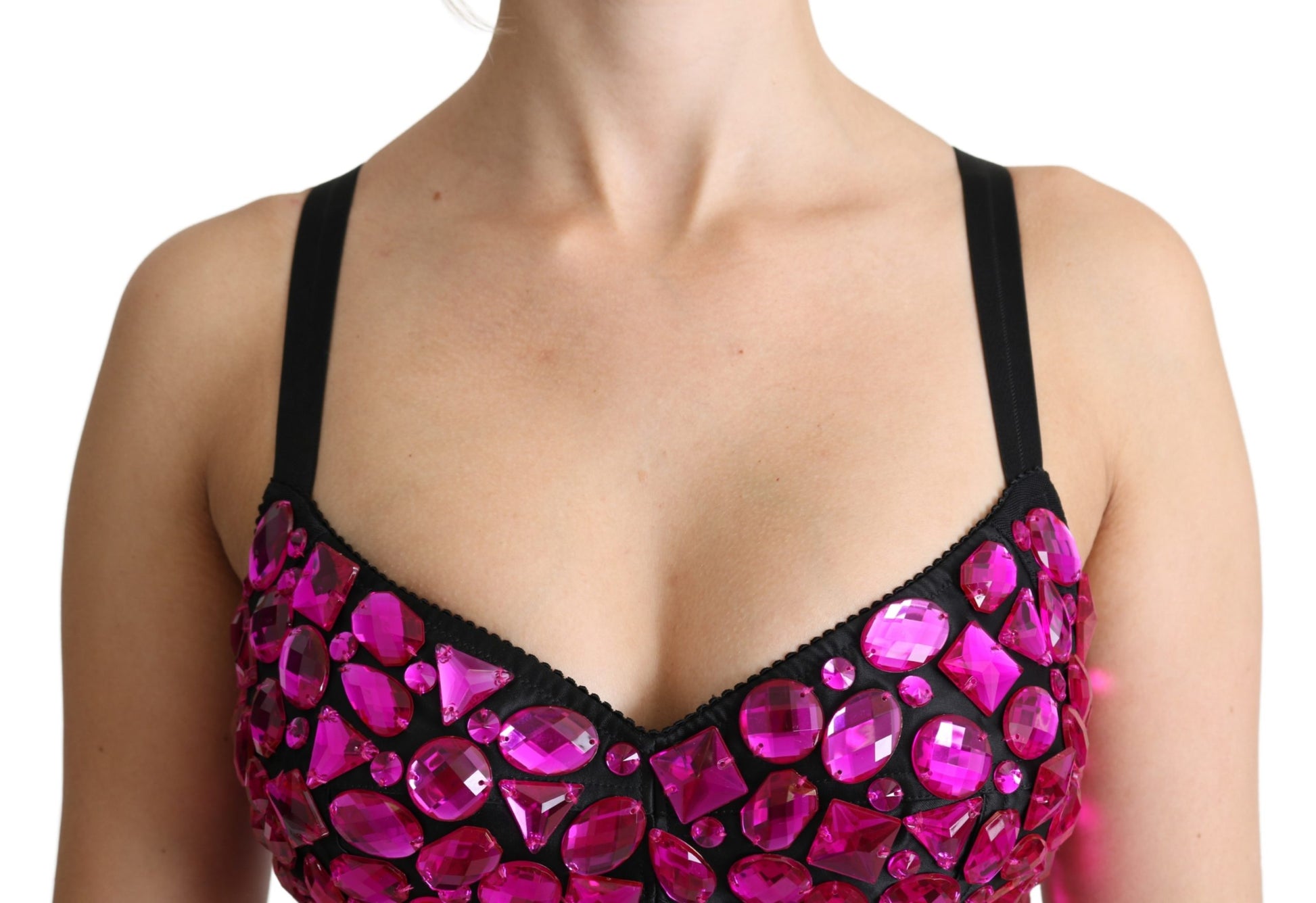 Schwarzes Bustier Fuchsia kristallbesetztes Cropped Top