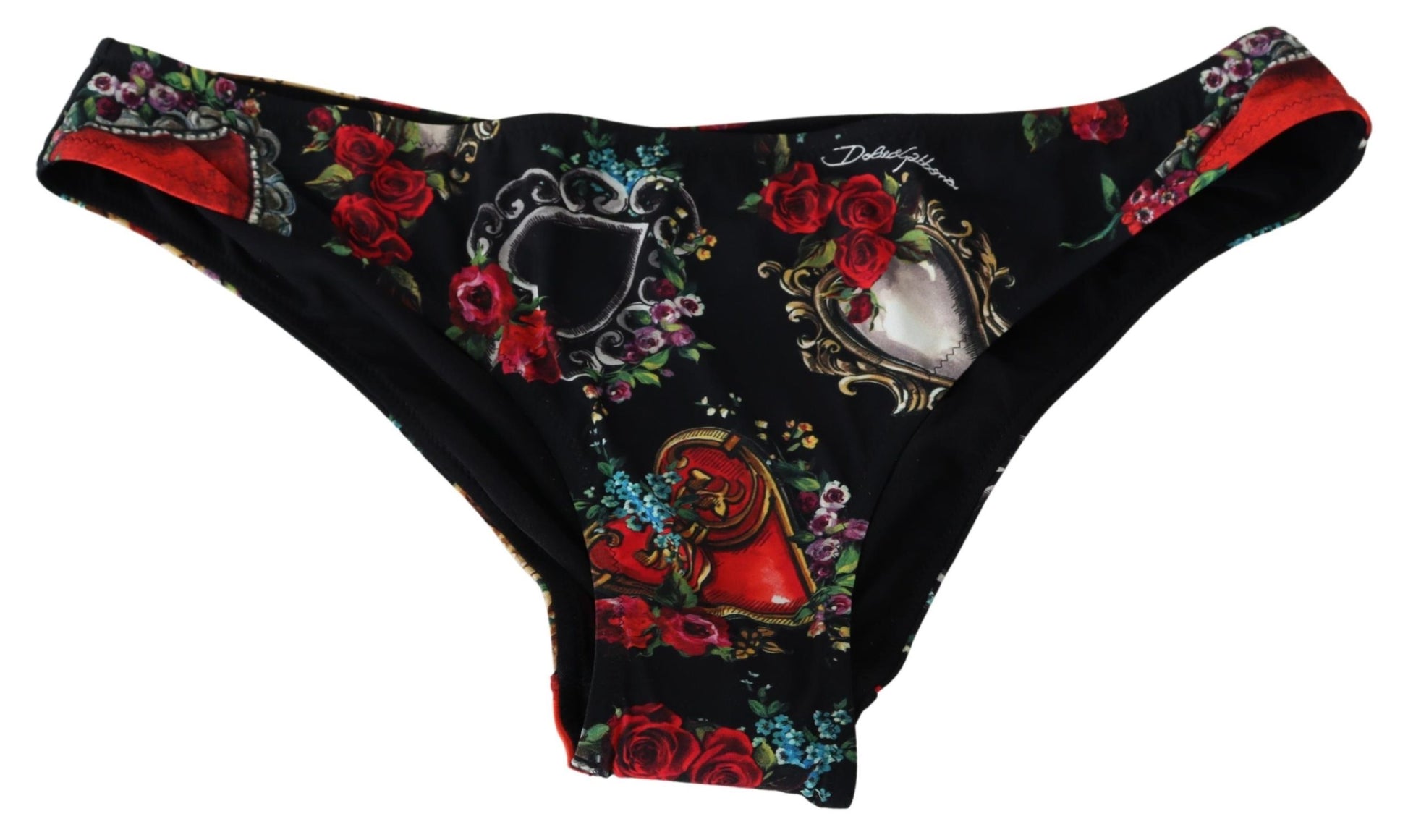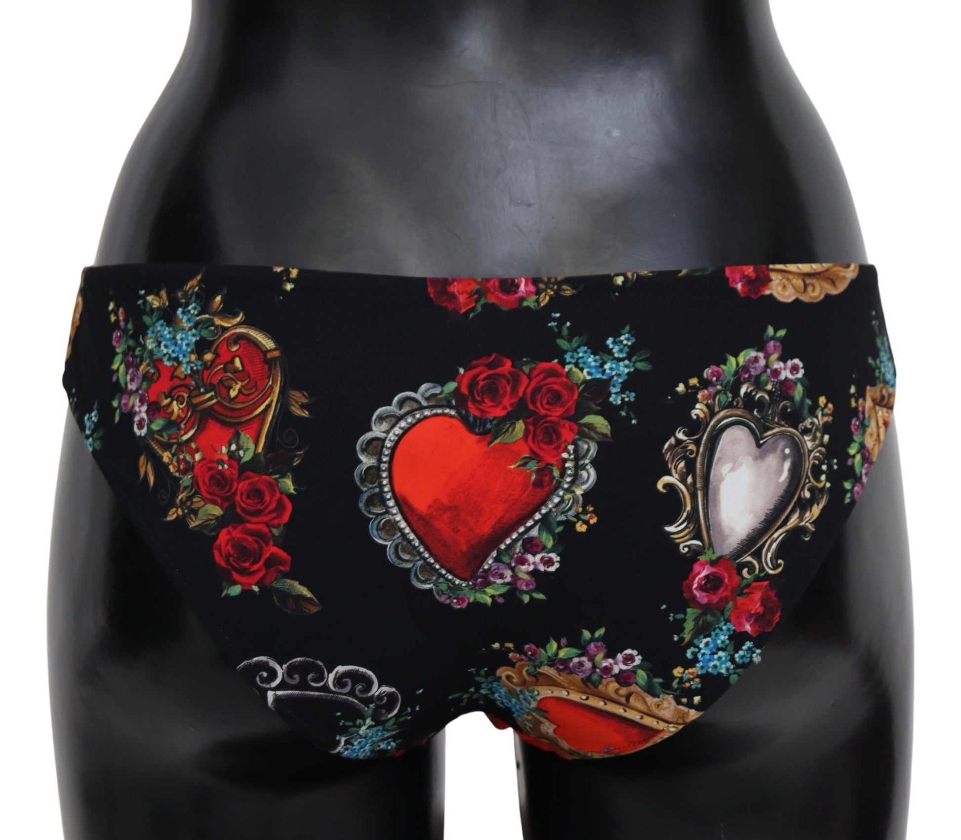 Wunderschönes, brandneues, 100% authentisches Dolce & Gabbana schwarzes Bikini-Unterteil mit heiligem Herz-Print aus leichtem, elastischem Material.