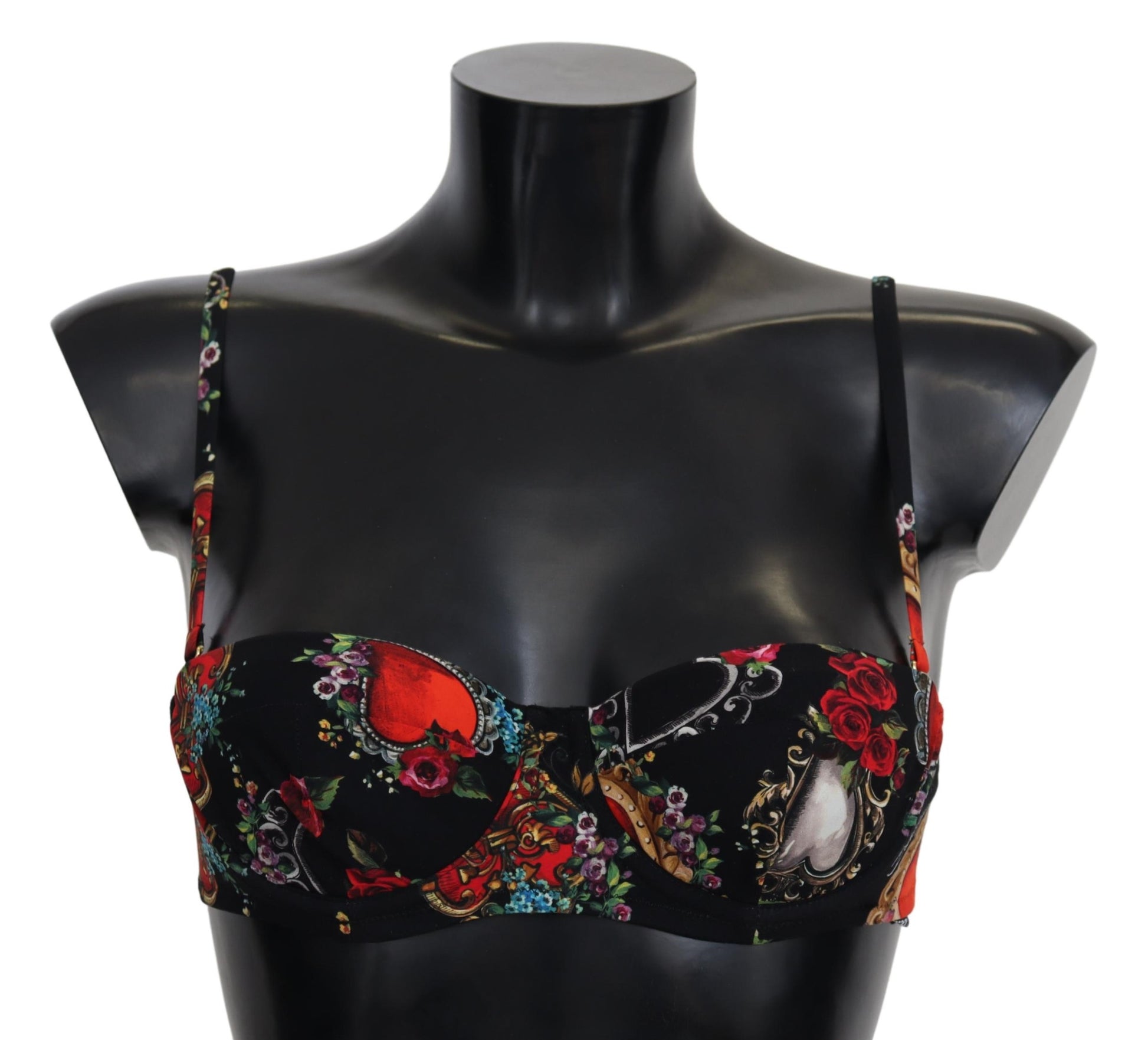 Wunderschönes, brandneues, 100% authentisches Dolce & Gabbana Bikini-Oberteil mit Blumen- und Herzdruck aus leichtem, elastischem Material.