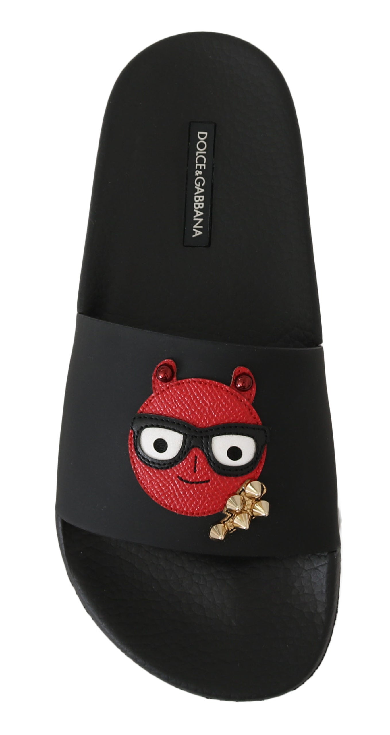 Schwarzes Leder #dgfamily Rutschen Sandalen Schuhe