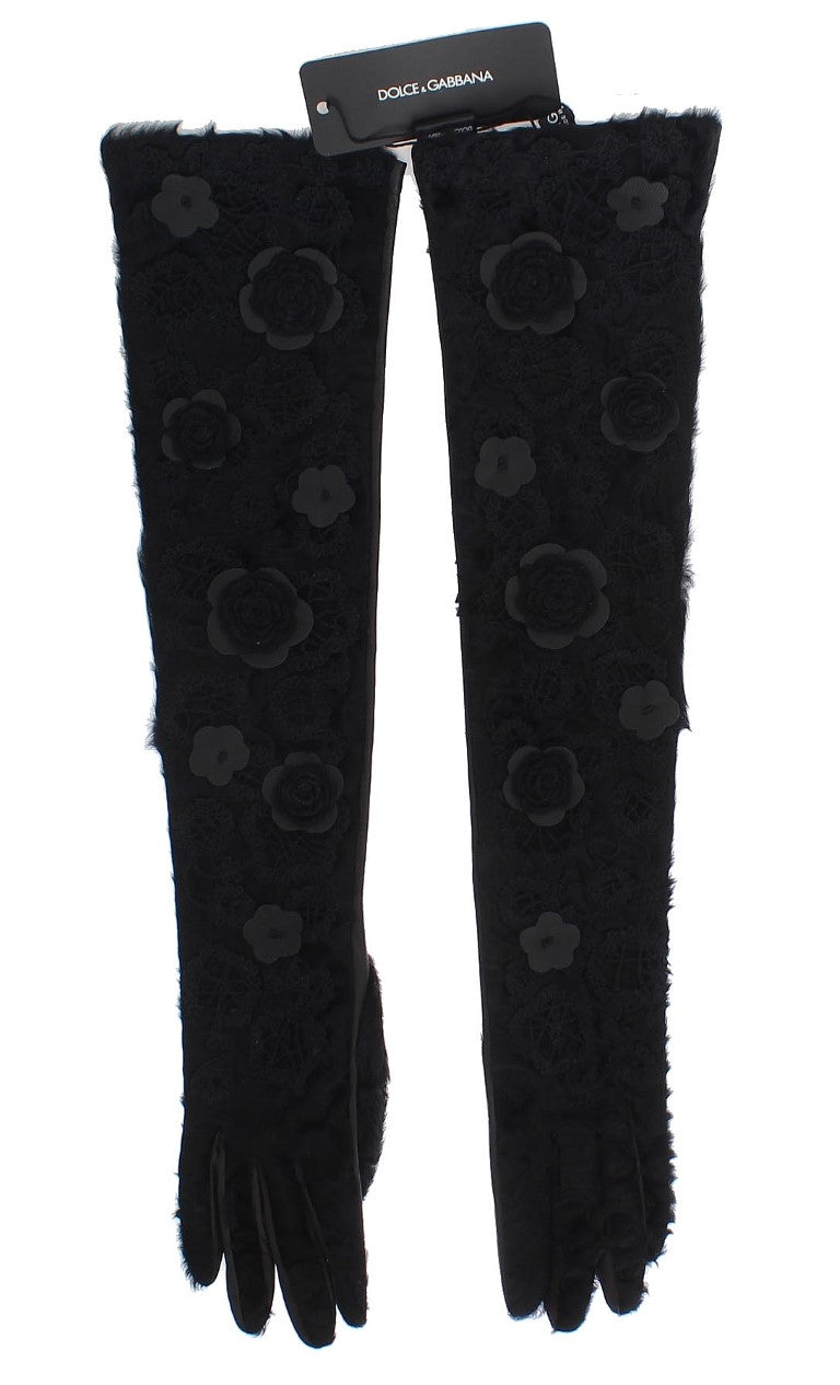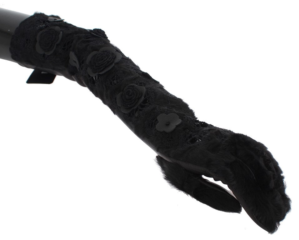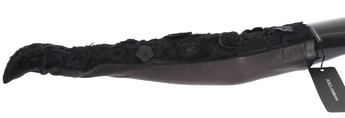 Schwarzes Leder Floral Xiangao Pelz Handschuhe