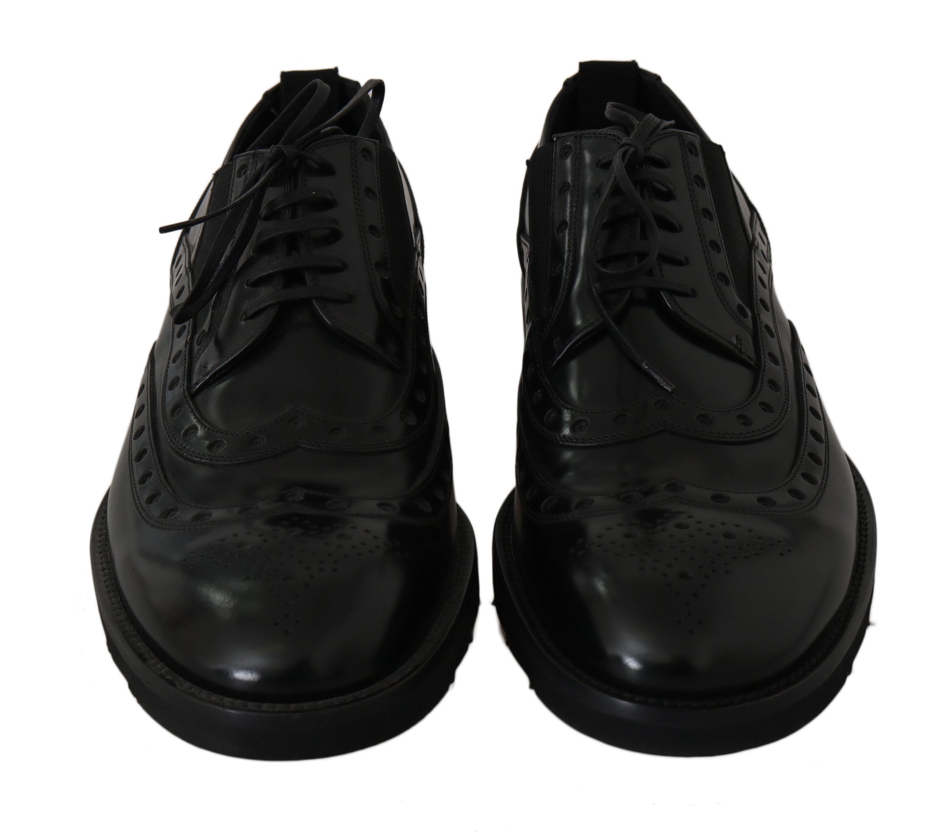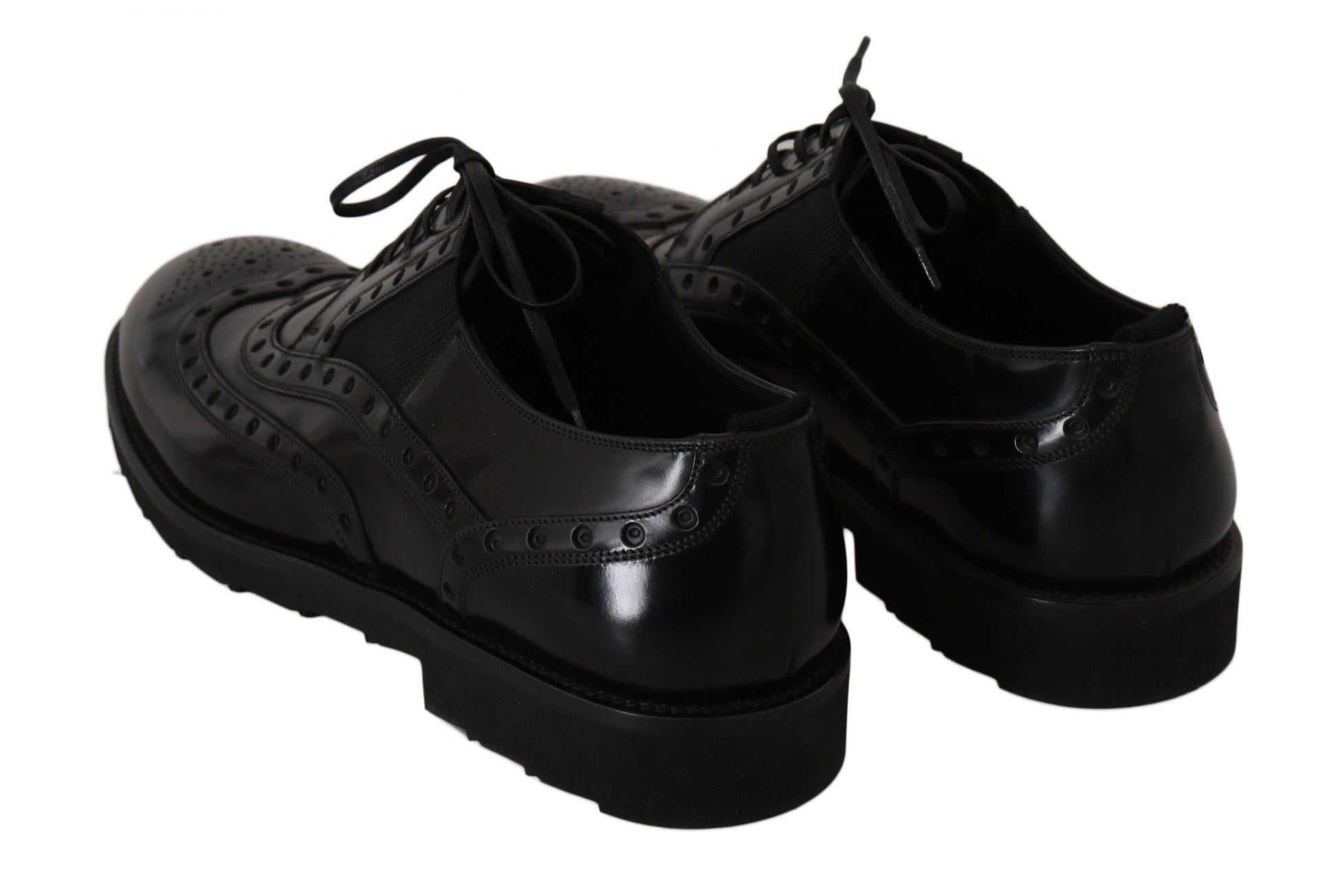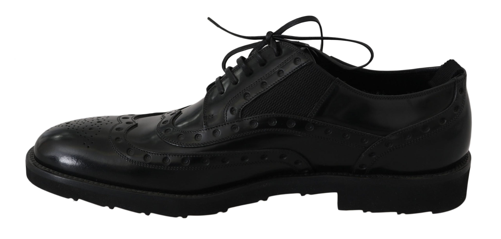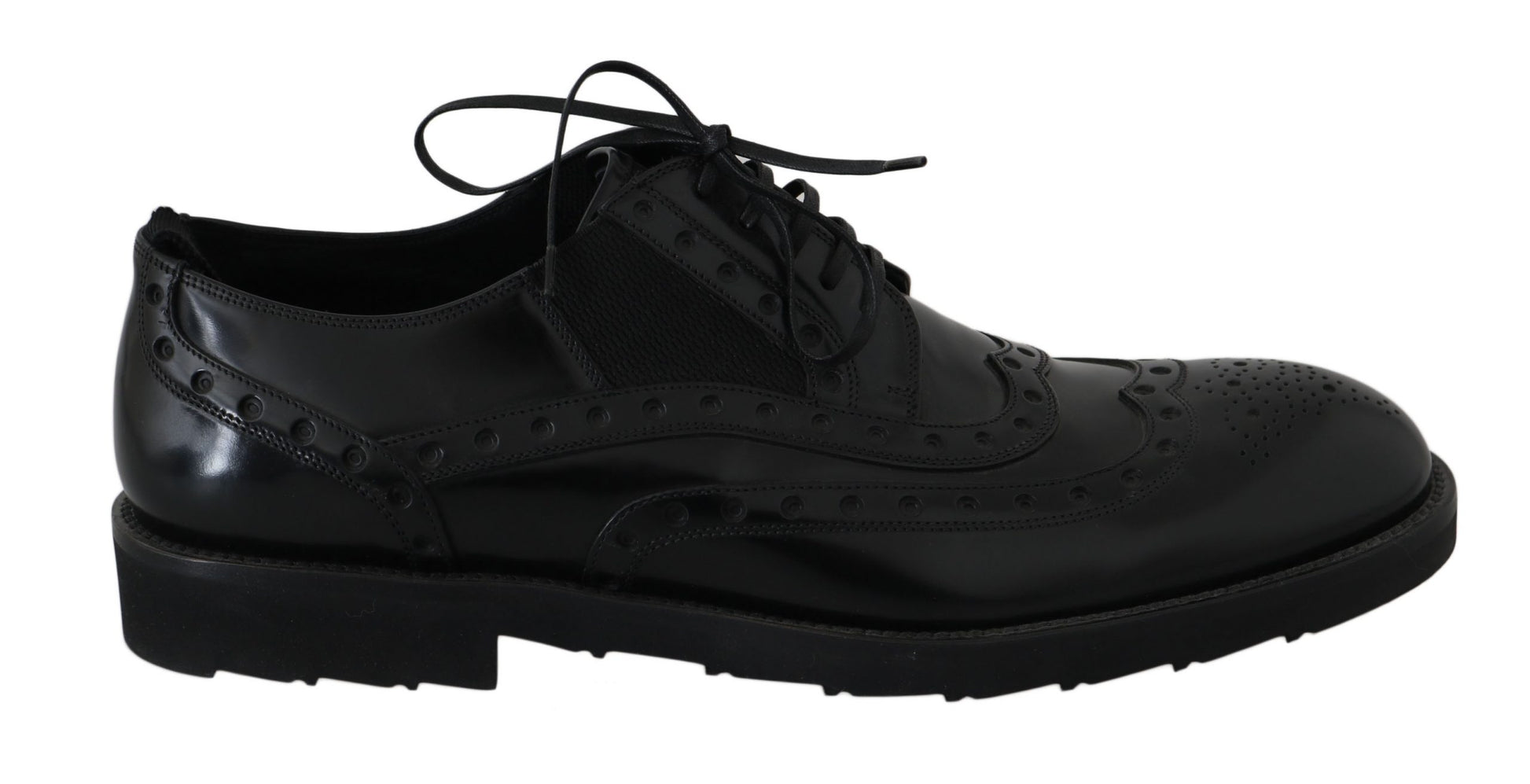 Schwarzes Leder Kleid Derby Wingtip Schuhe