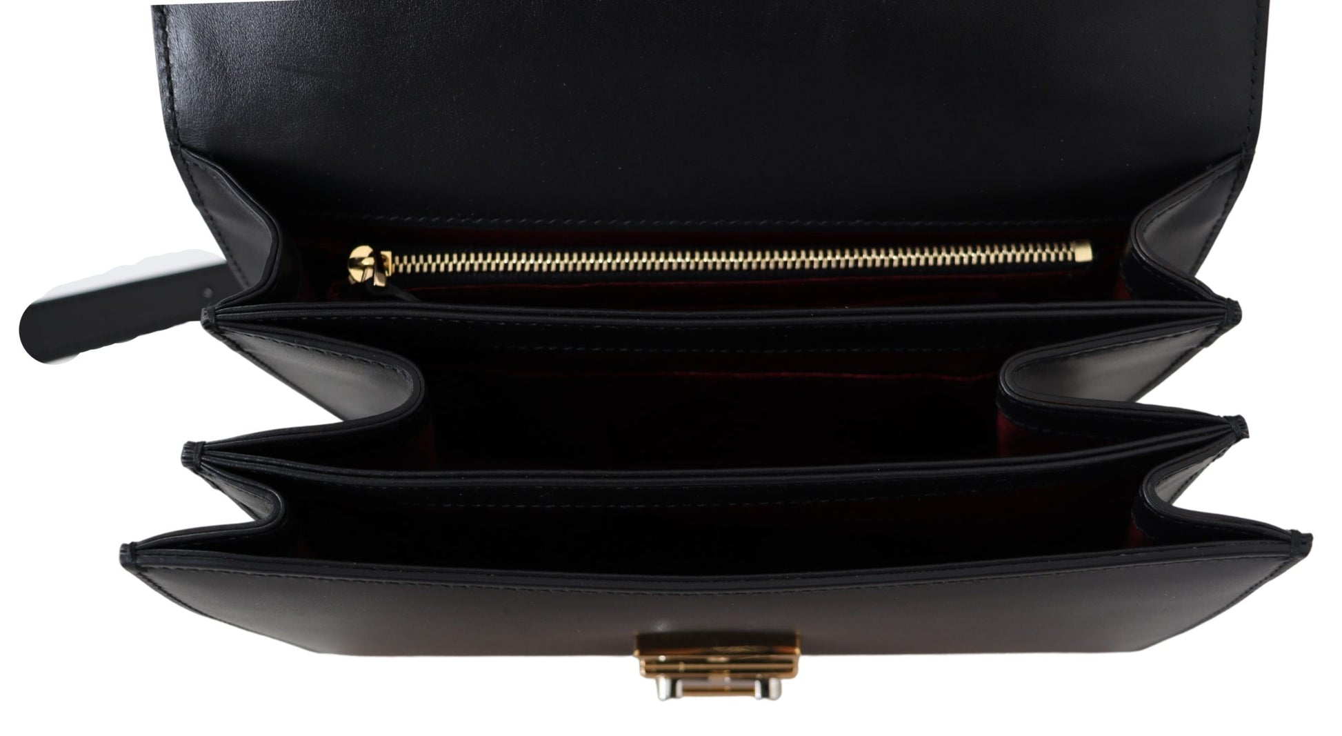 Details: Obere Klappe mit Schnallenverschluss, silberne, goldfarbene Metallbeschläge und verstellbarer Riemen zum Tragen über der Schulter oder am Körper. Mit 3 Fächern und einem Reißverschlussfach.
