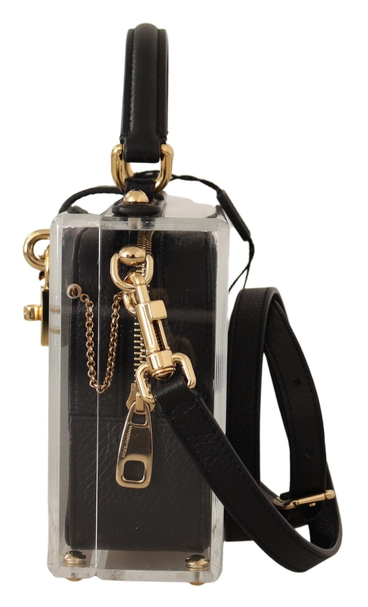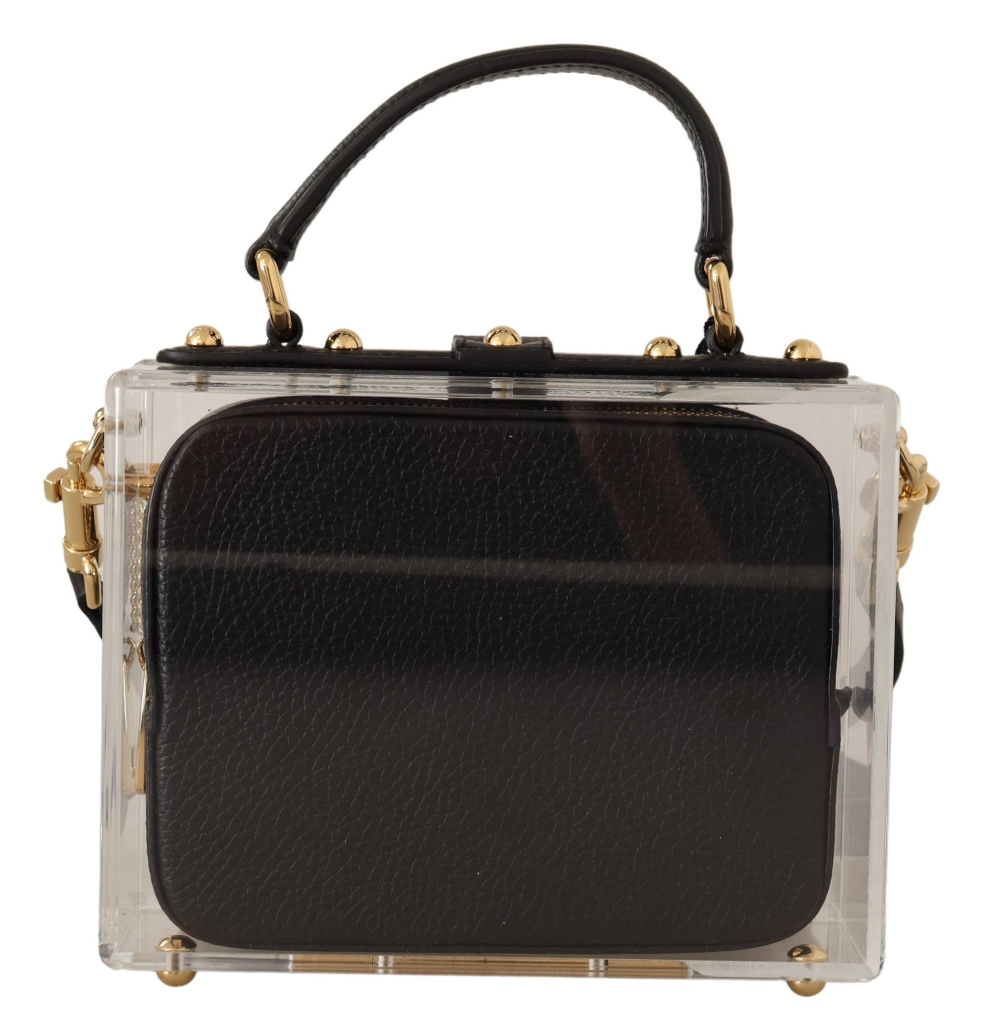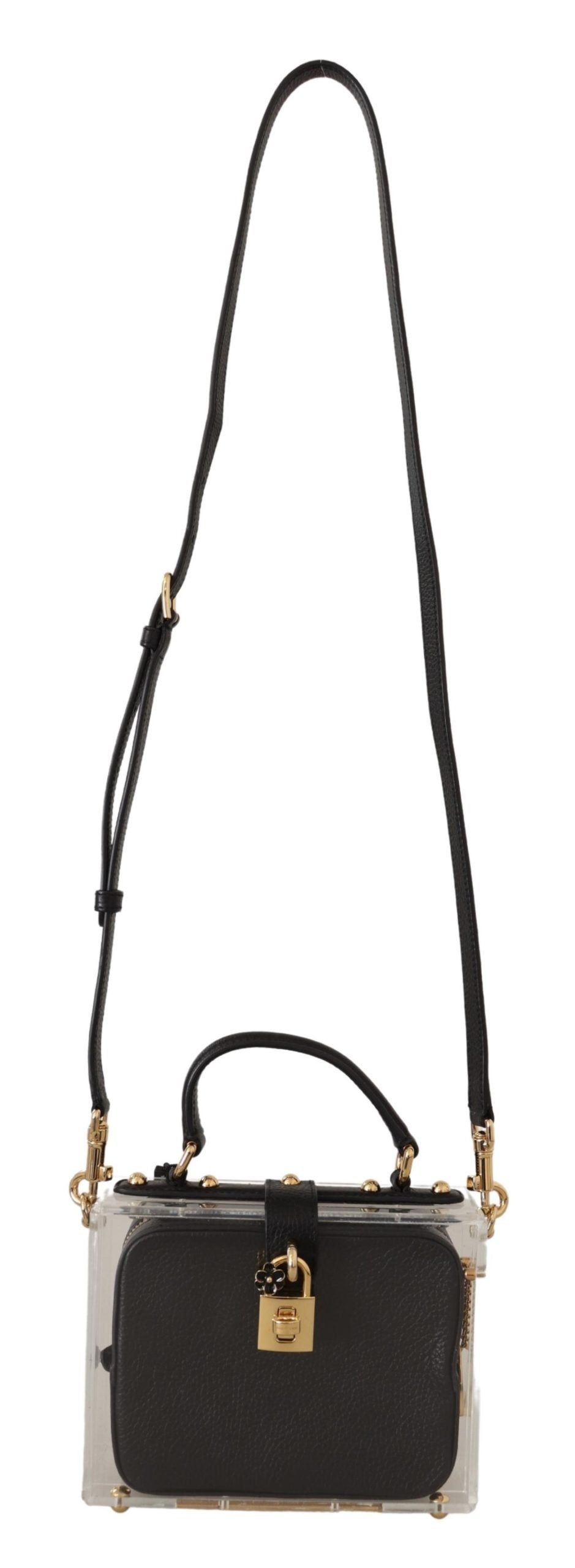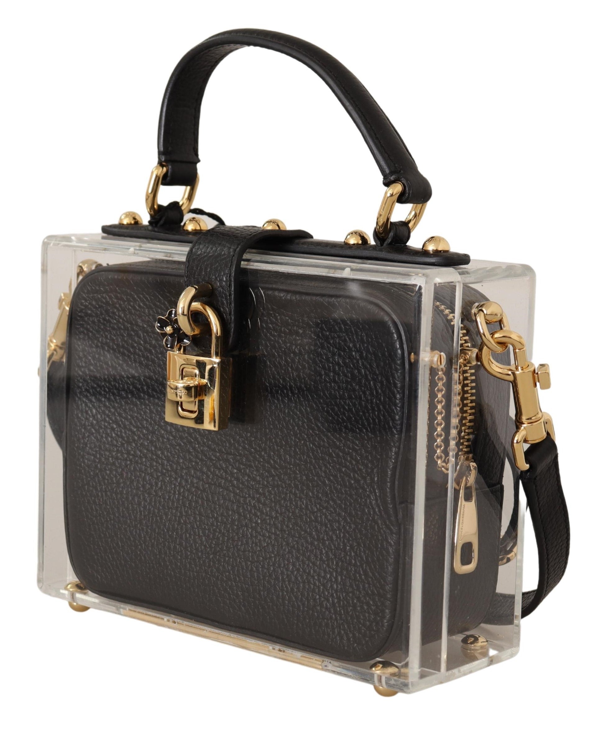 Wunderschöne, brandneue, 100% authentische Dolce & Gabbana Box Bag aus Plexiglas und Leder. Ein Vorhängeschloss mit Drehverschluss mit goldfarbener Hardware, einem oberen Griff und einem Schulterriemen.