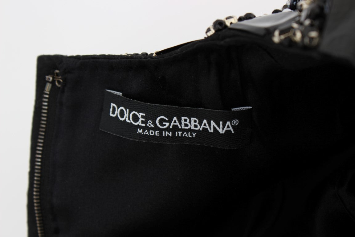 Wunderschönes, brandneues, 100% authentisches DOLCE & GABBANA Masterpiece schwarzes und silbernes, von Norman Knight inspiriertes Blusentop mit Kristall und Pailletten. Dieser Artikel stammt aus der exklusiven MainLine Dolce & Gabbana Kollektion.