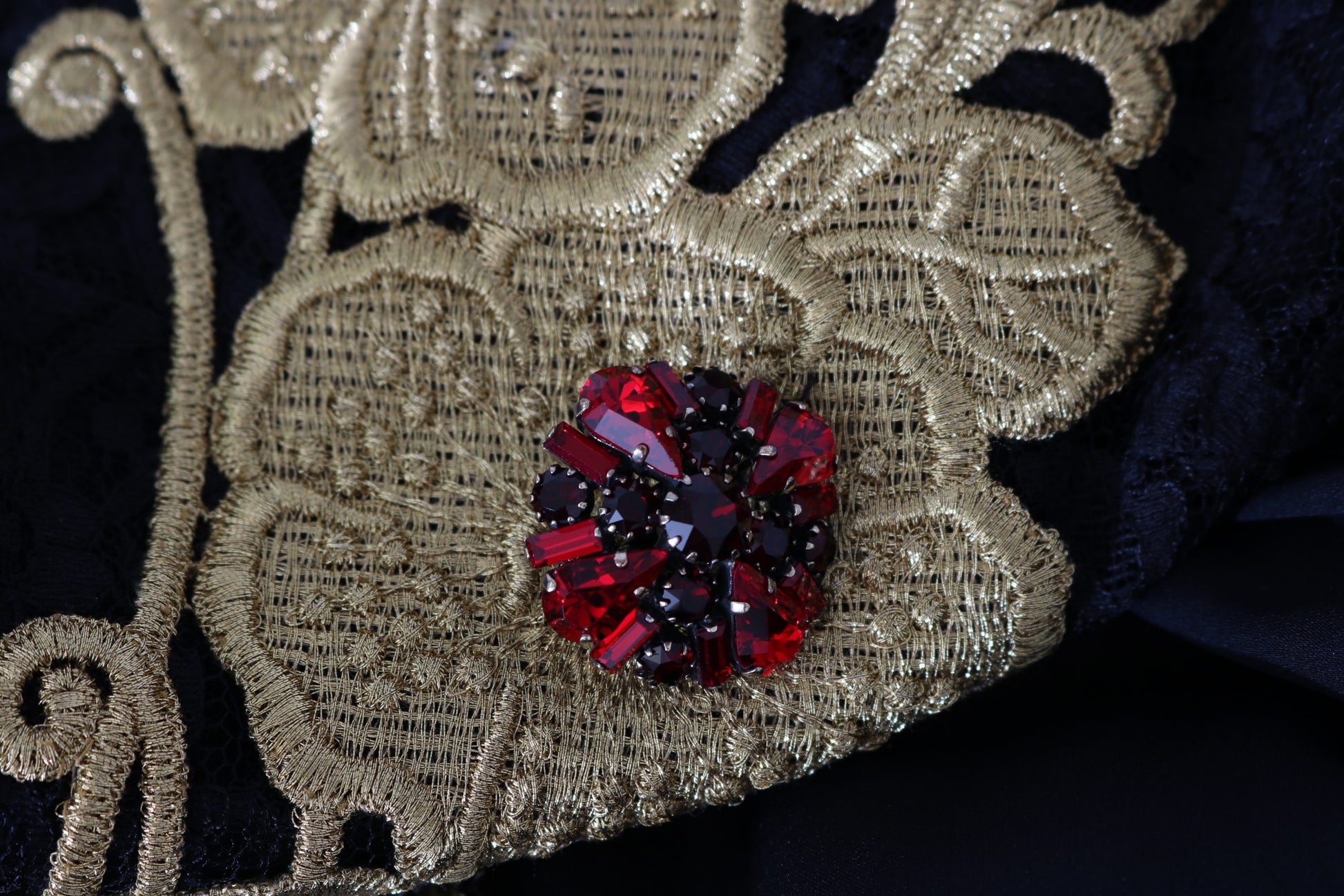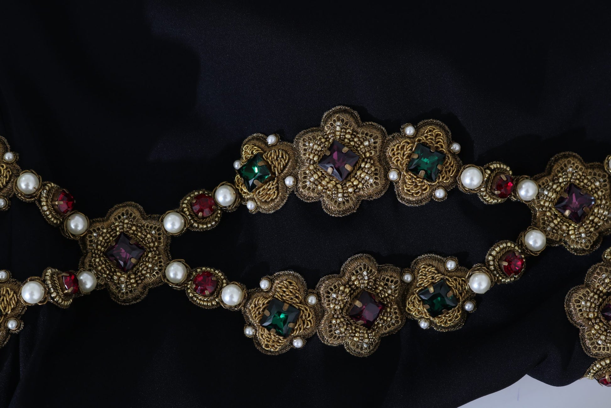 Schwarzes Seiden-Stretch-Kleid mit goldenem Kristall
