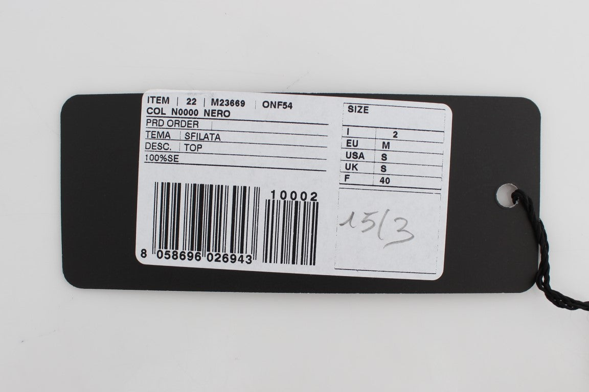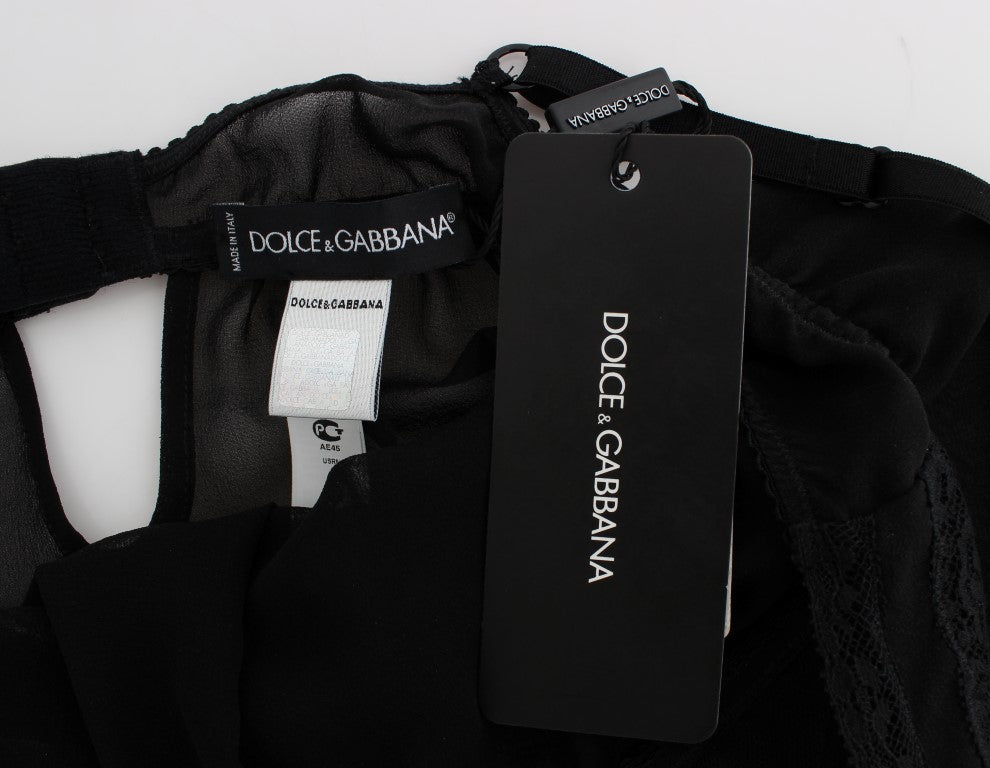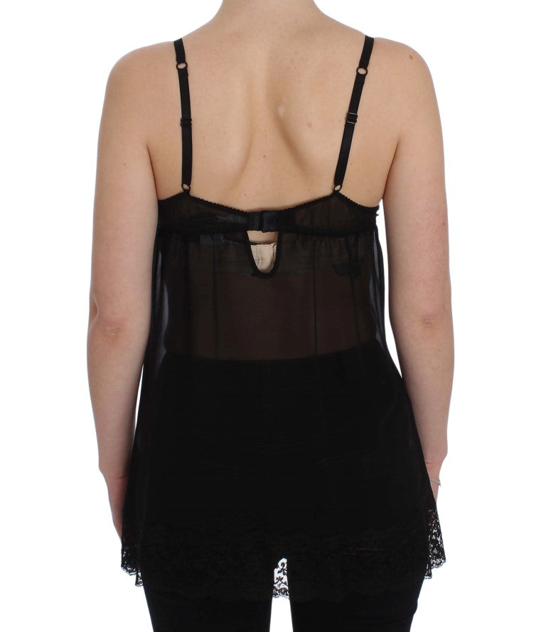 Schwarzes Seidenunterwäsche-Top mit floraler Spitze