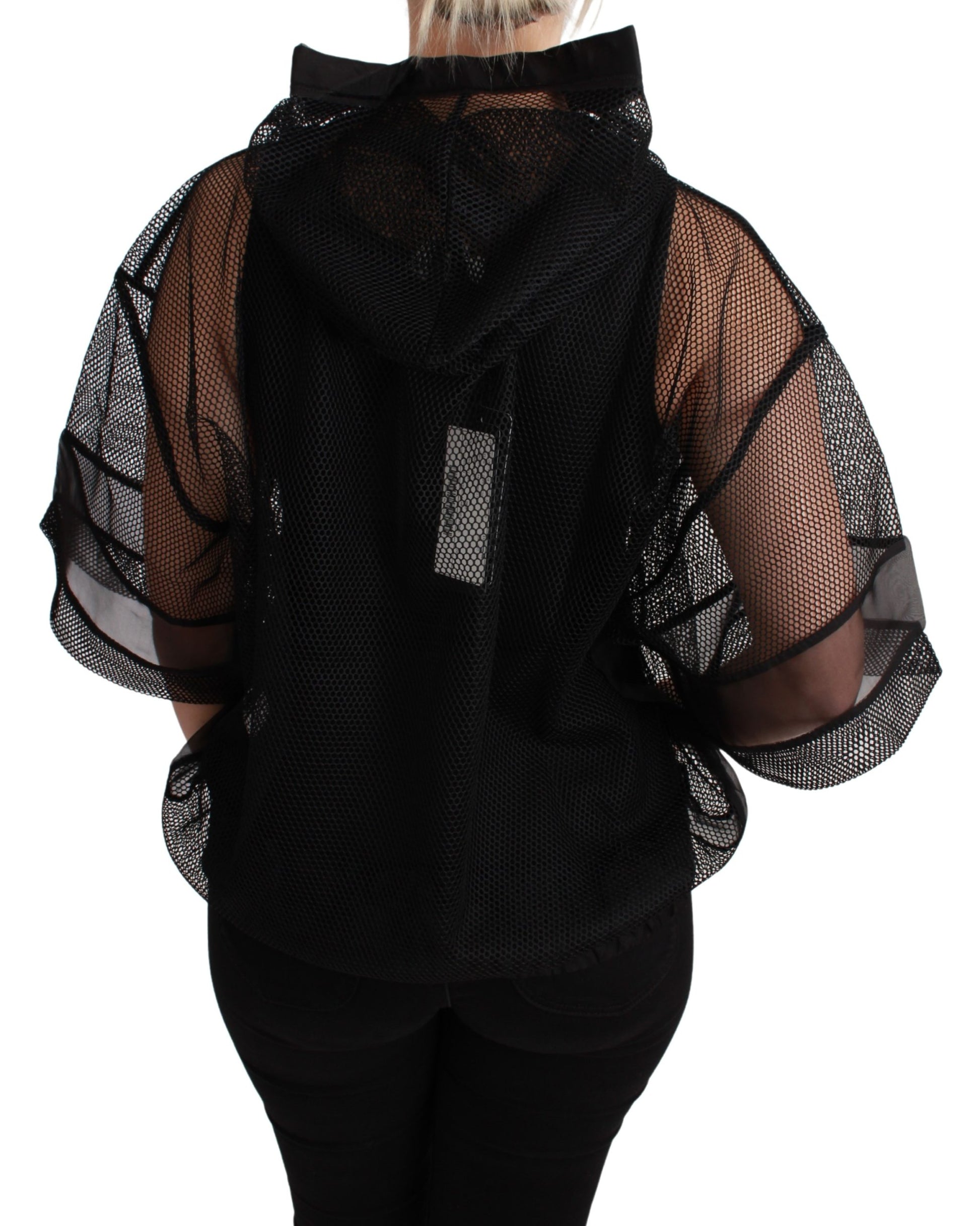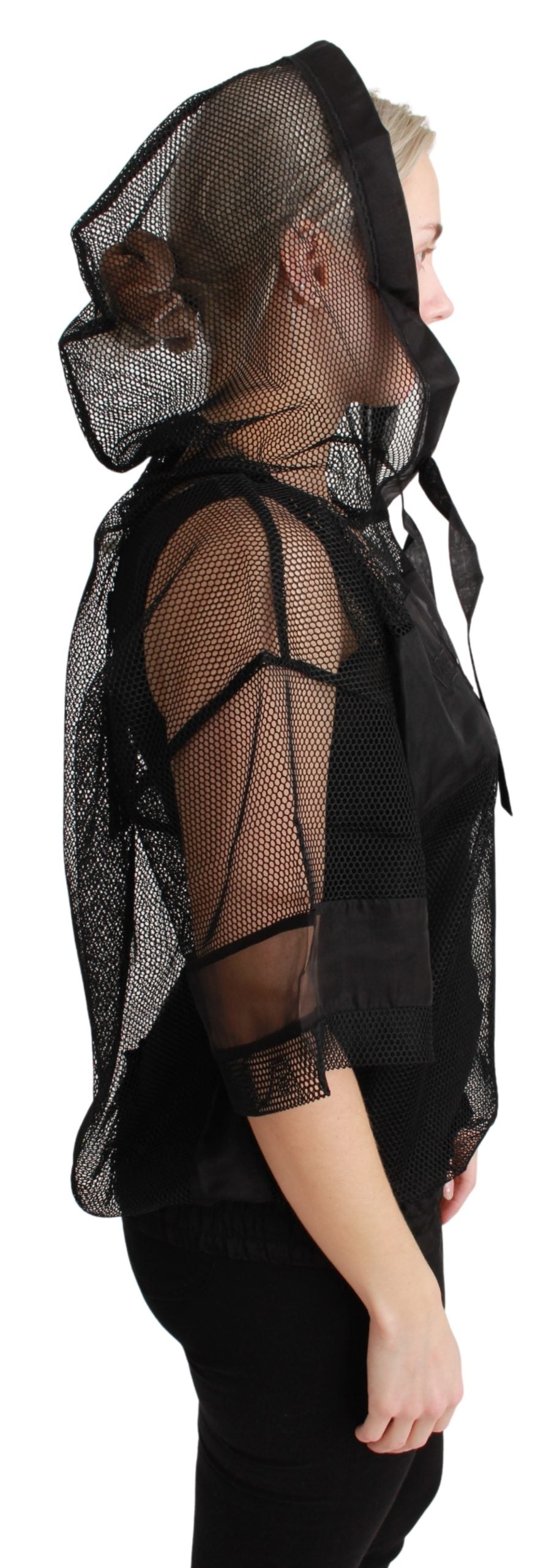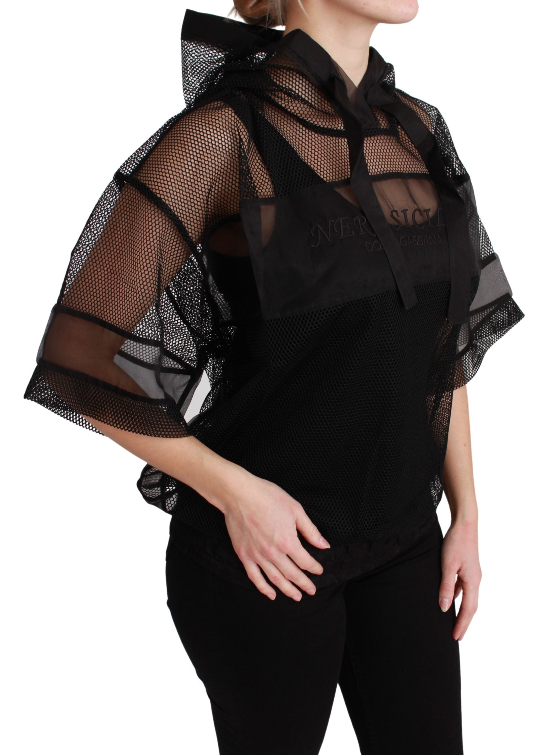 Schwarzes Sheer Nero Sicilia Kapuzenblusen-T-Shirt