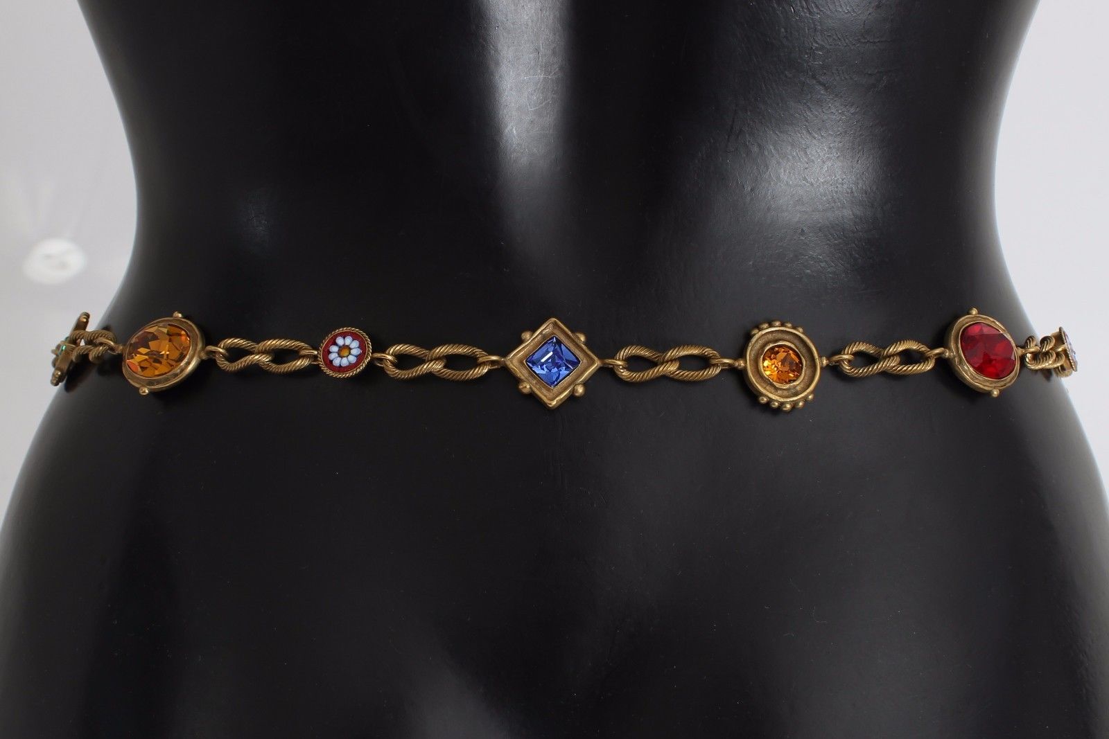 Schwarzes Wildleder Gold Messing Farbe Kristall Taille Gürtel