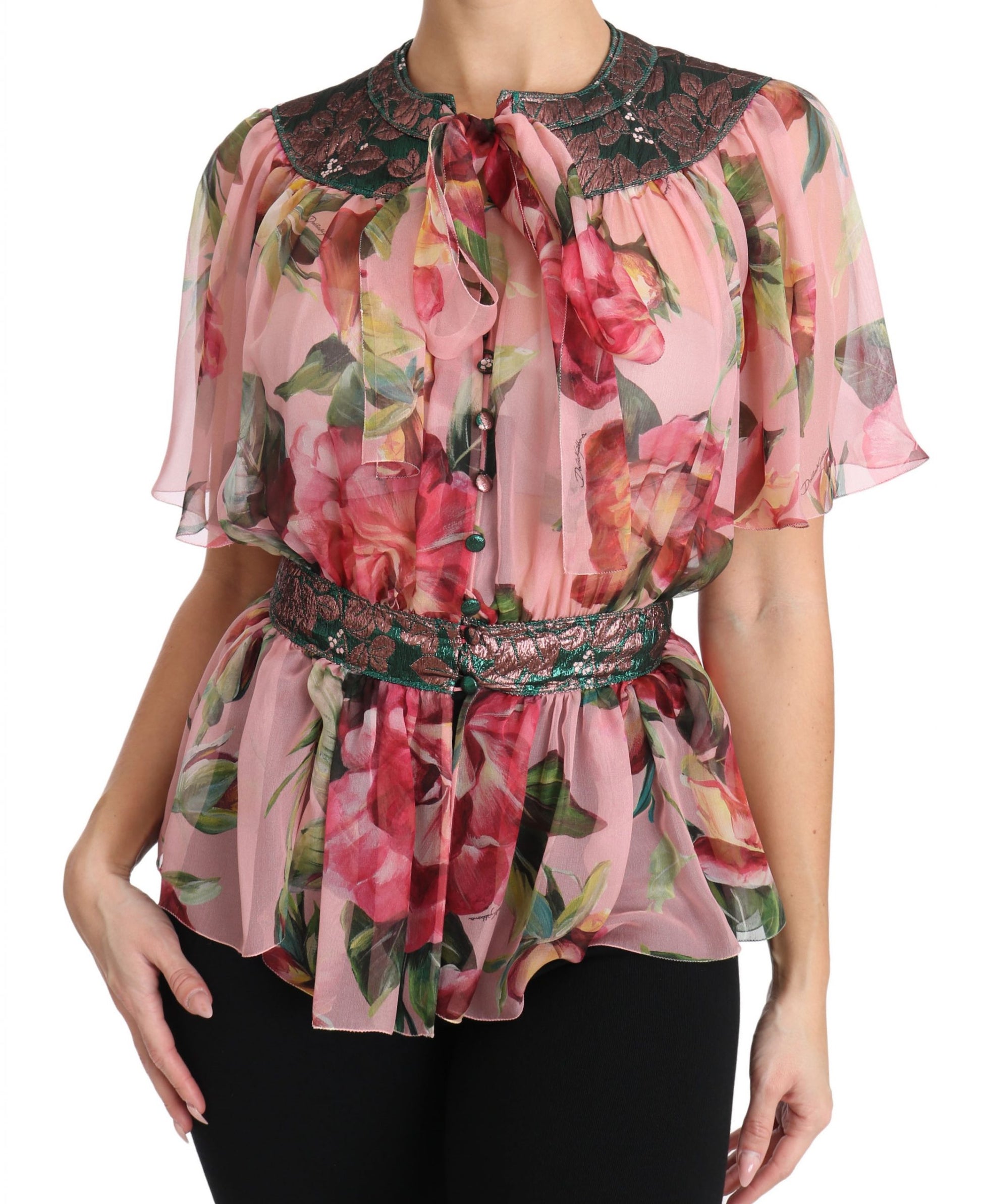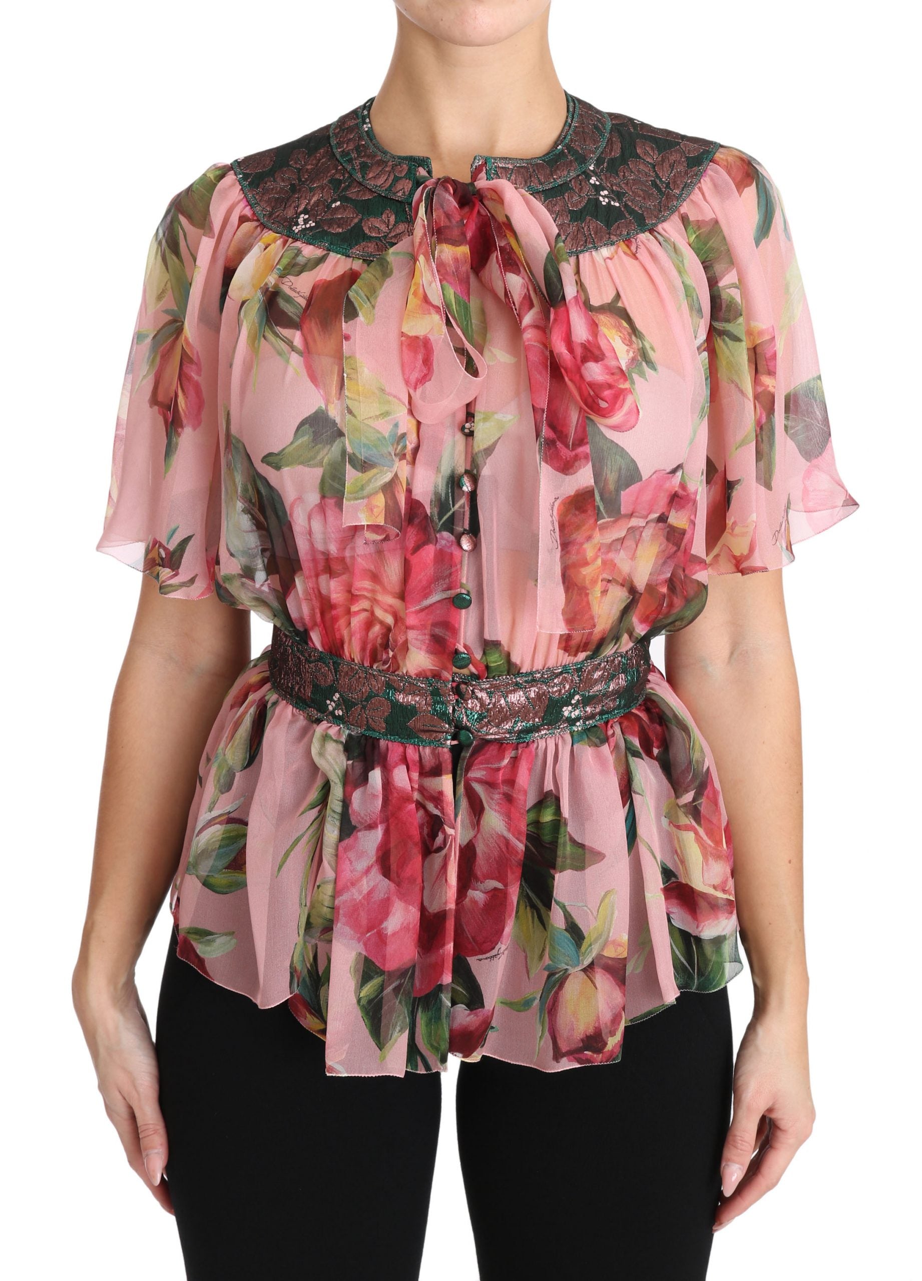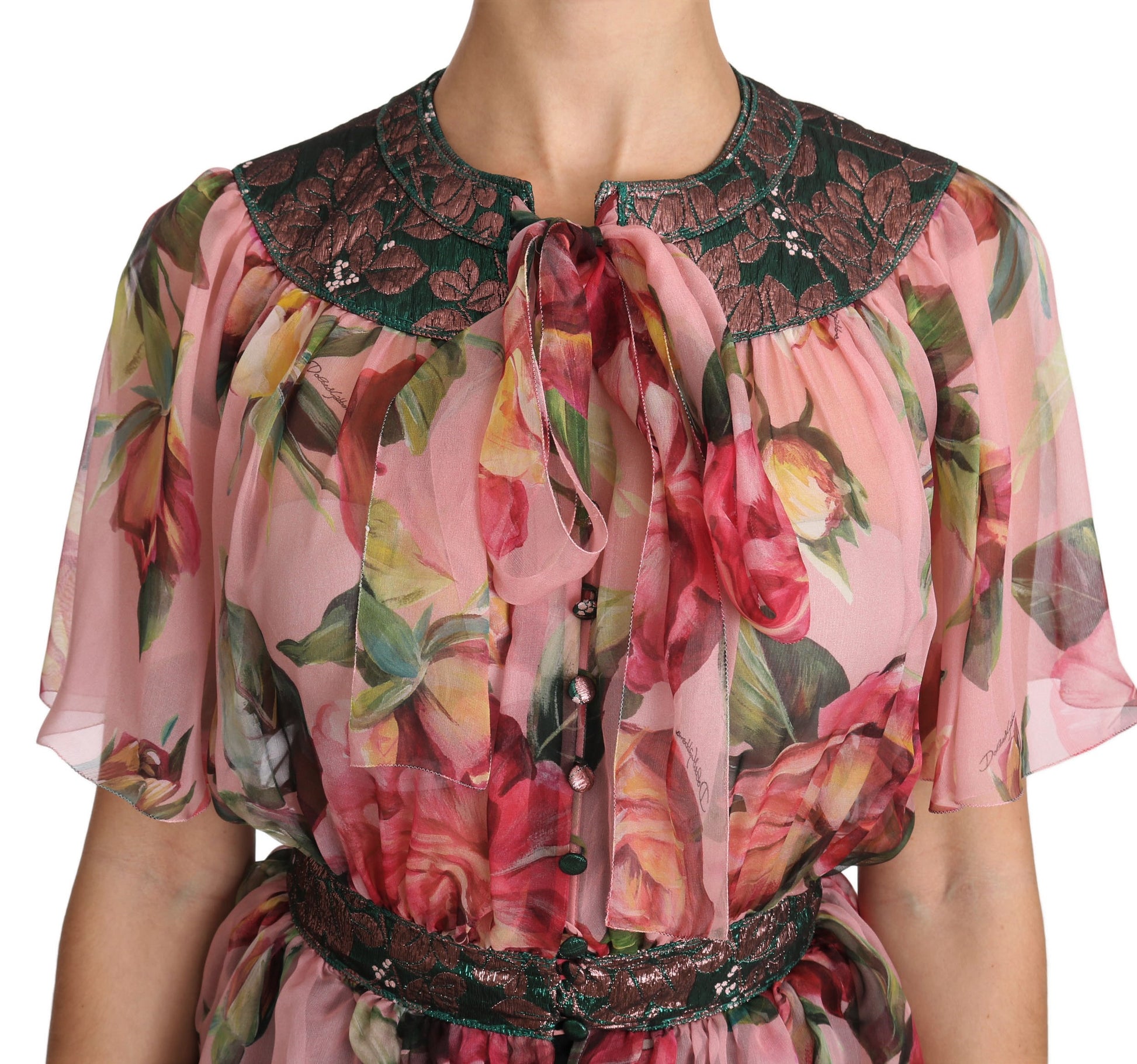 Absolut atemberaubend, 100% authentisch, brandneu mit Tags Dolce & Gabbana Floral Print Seidenhemd mit Pussy Bow
