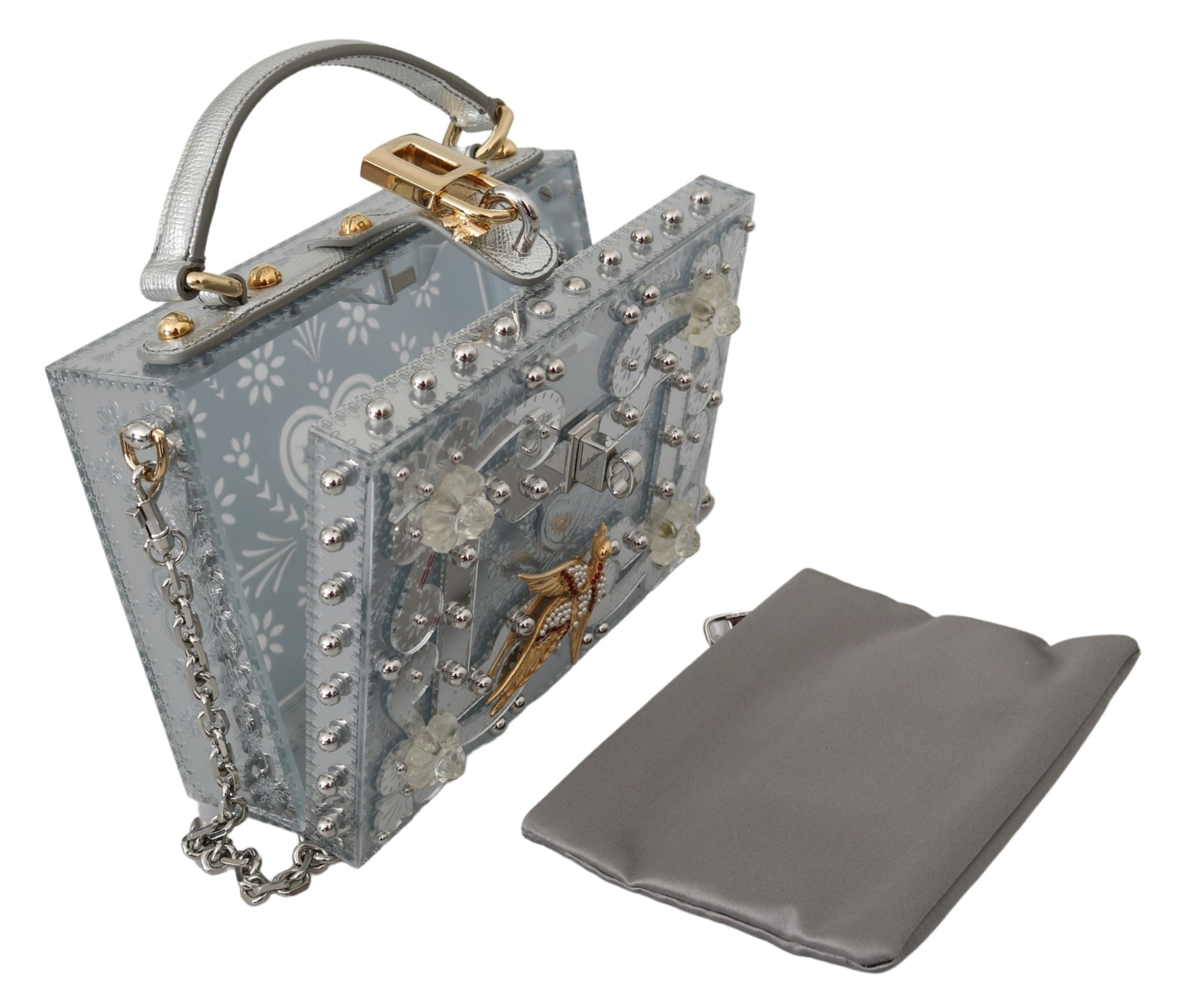 Silberne florale Vorhängeschloss-Schleife Kupplung Kristall BOX Tasche