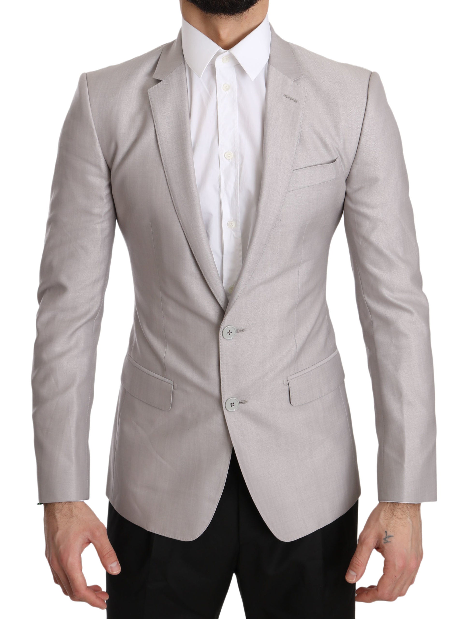 Silberne Wolle Slim Fit Jacke Mantel Blazer