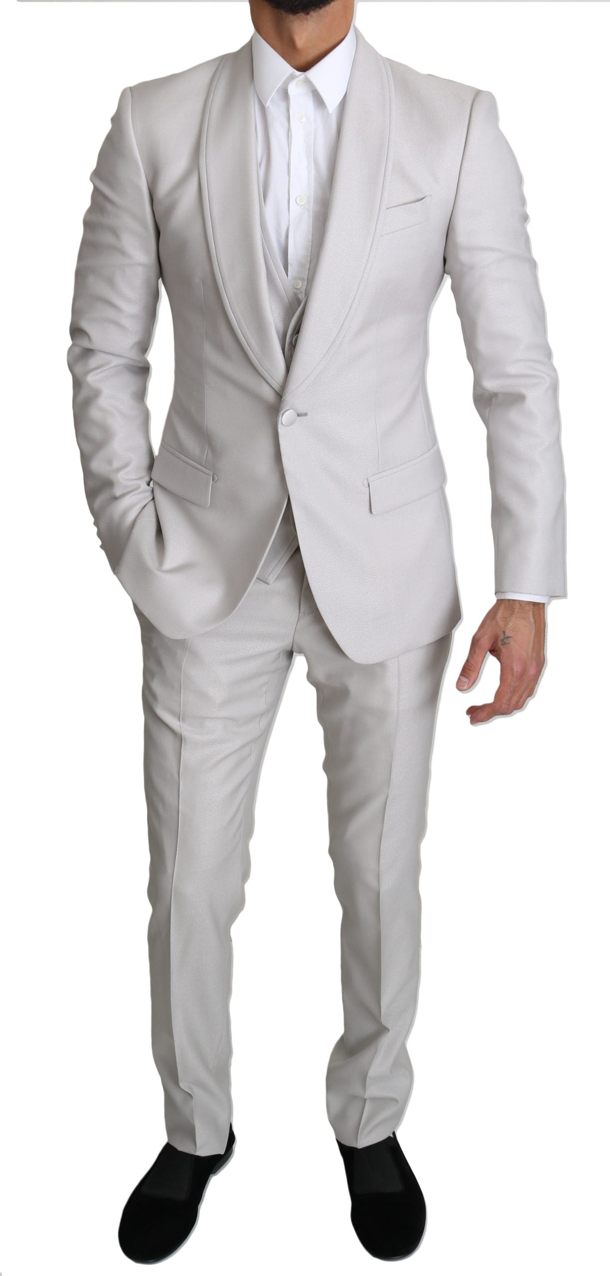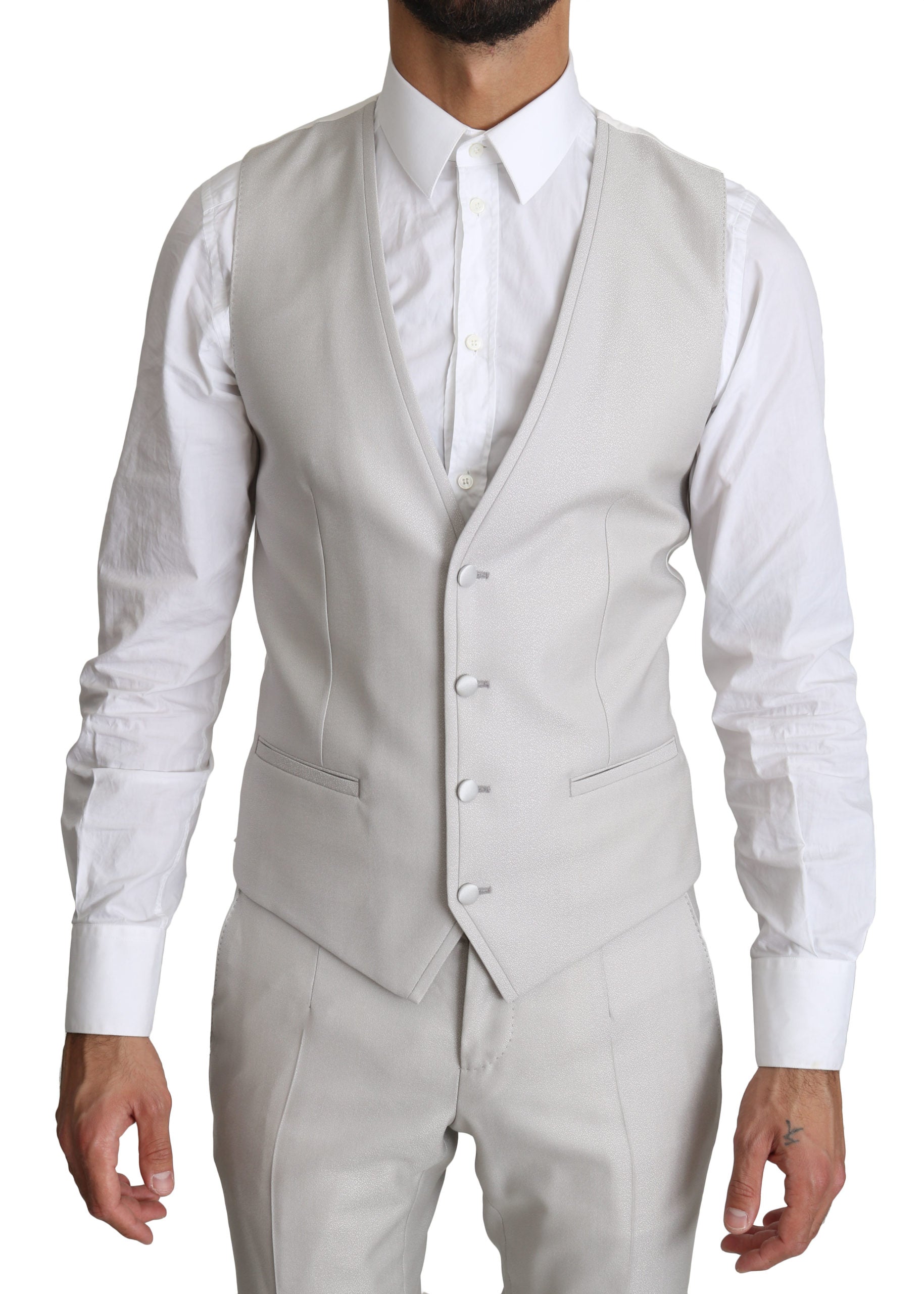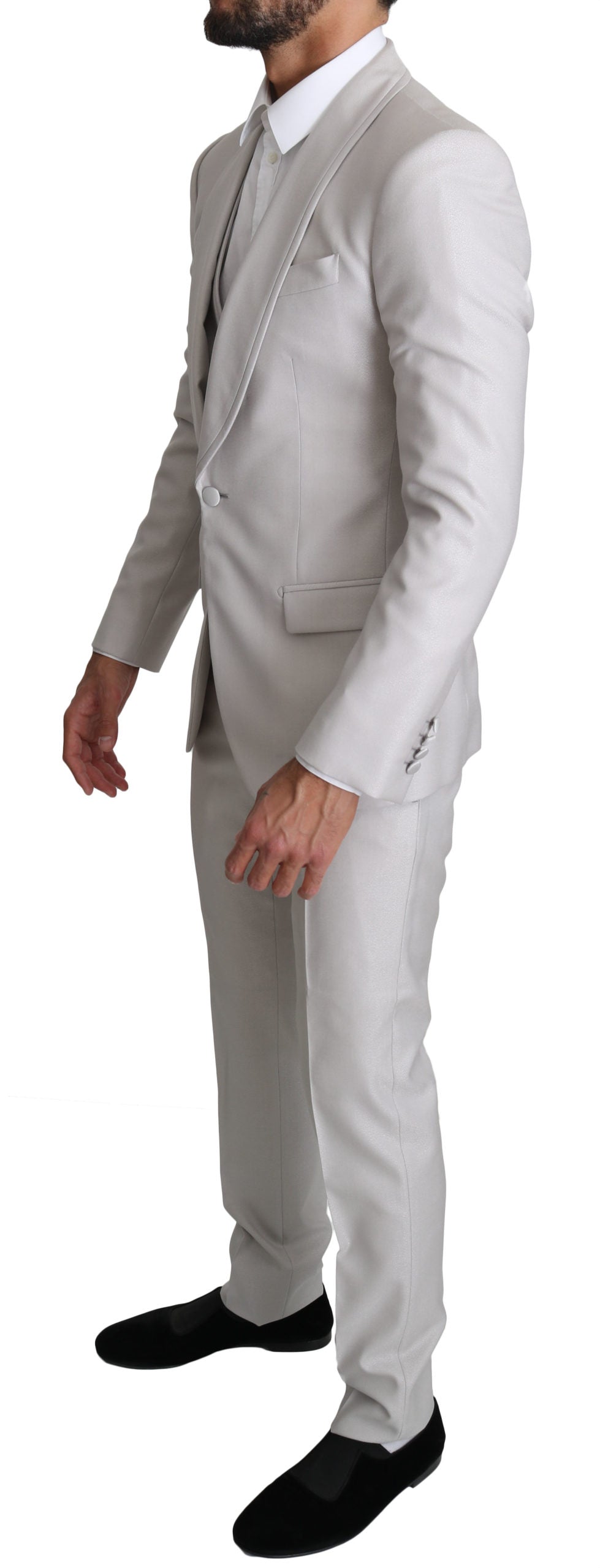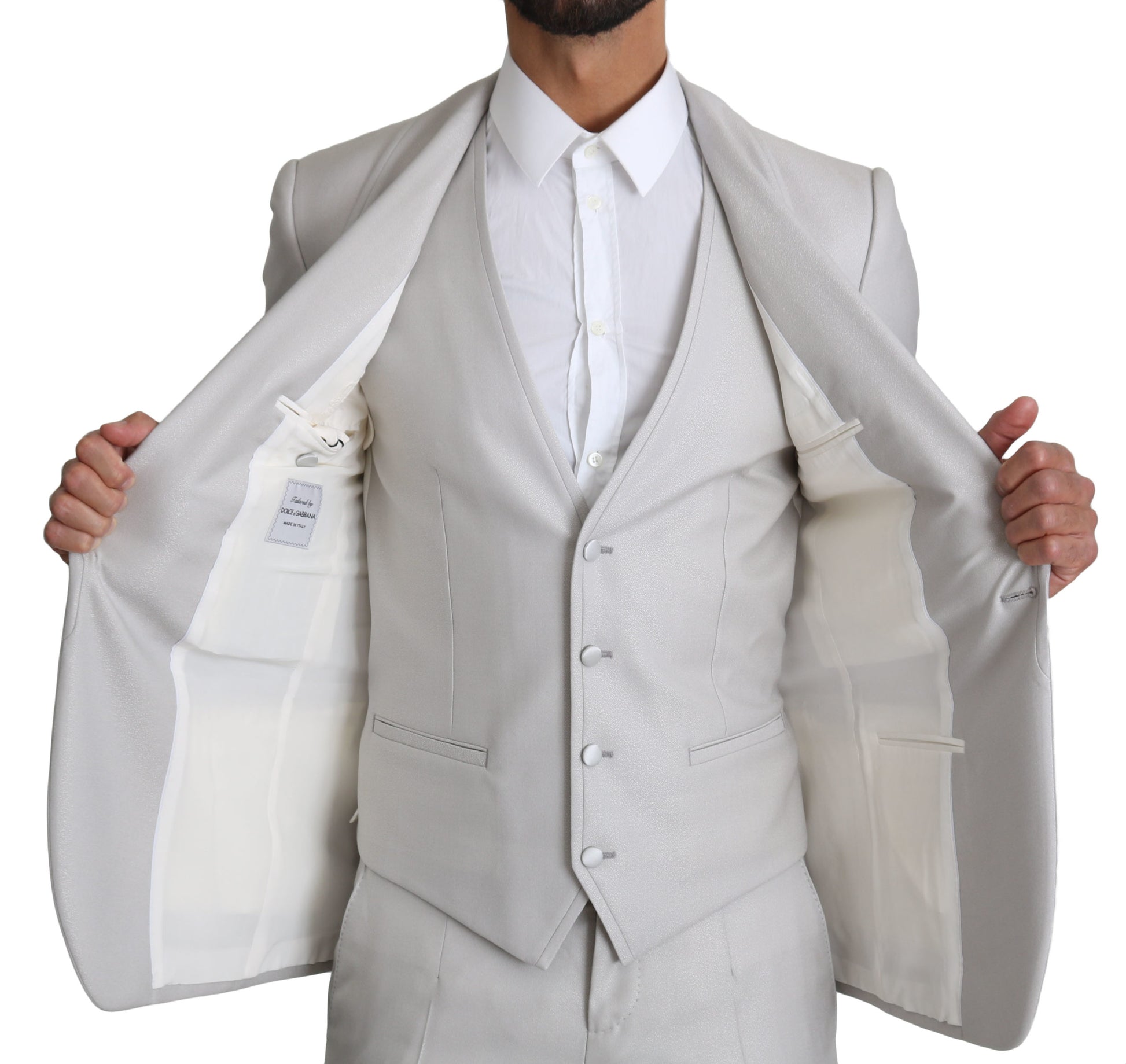 Silberner einreihiger 3-teiliger Anzug aus Wolle
