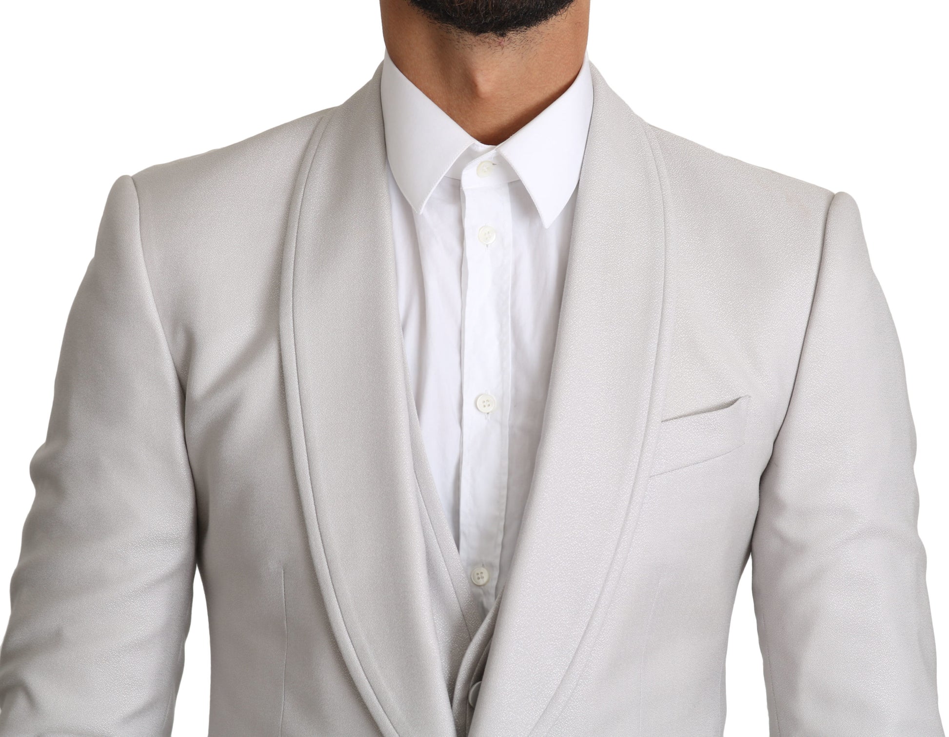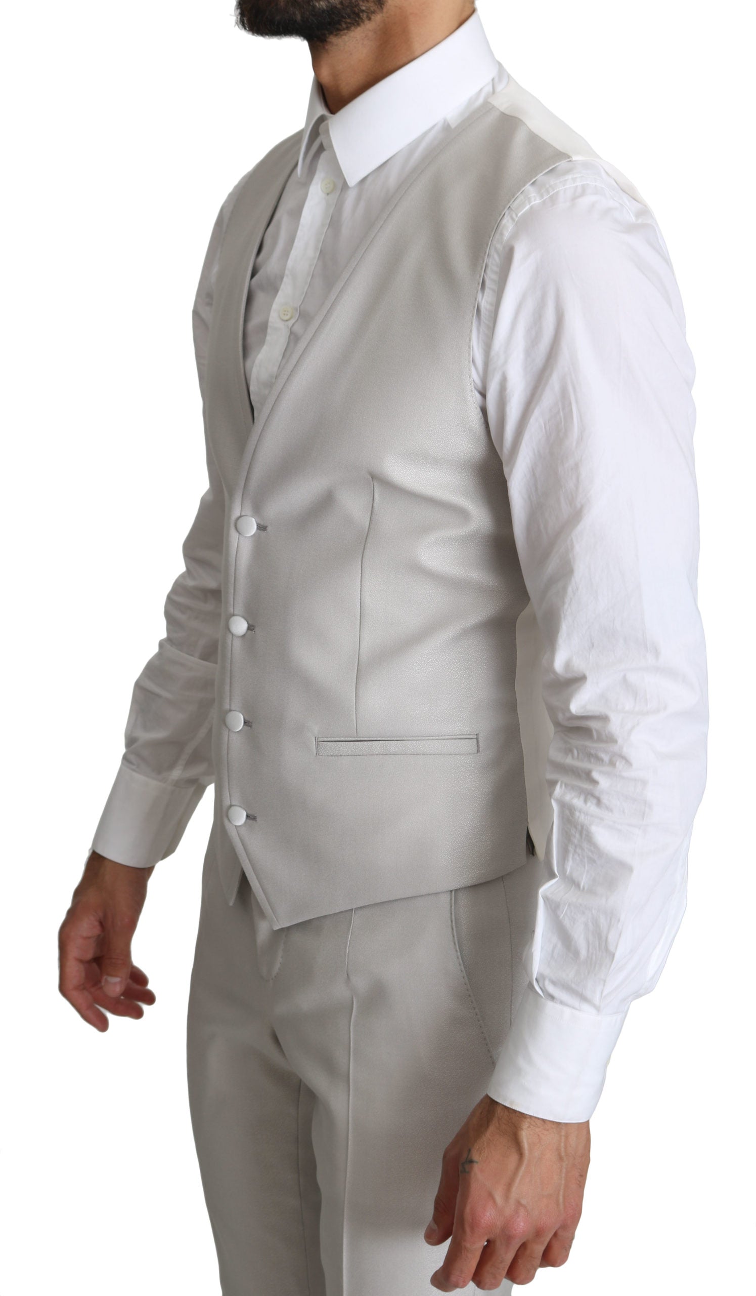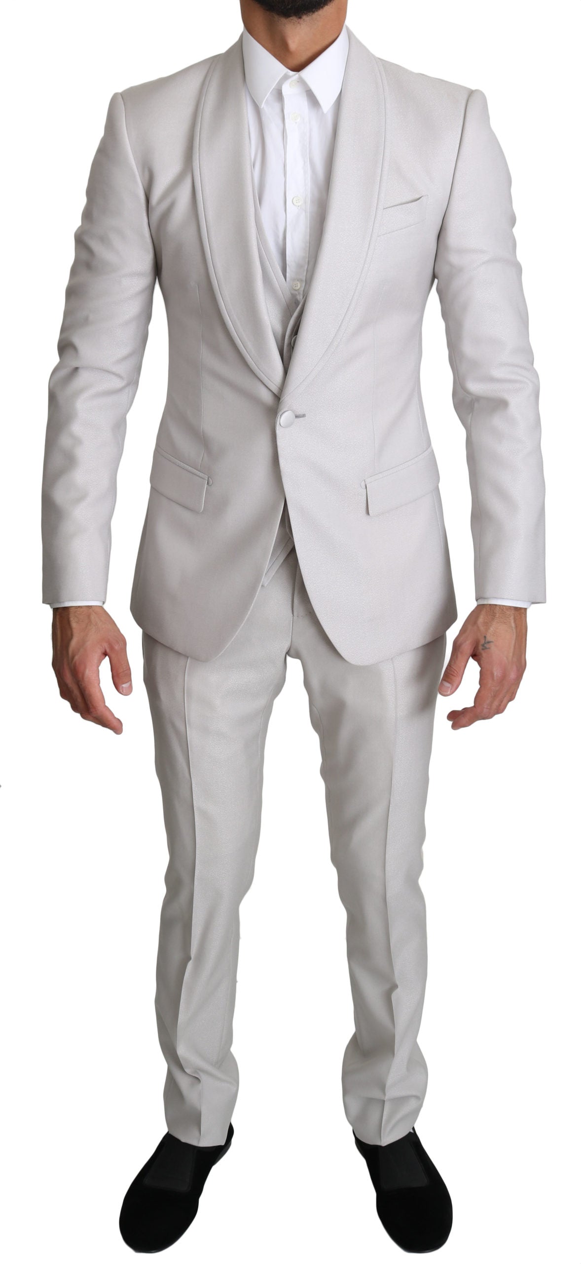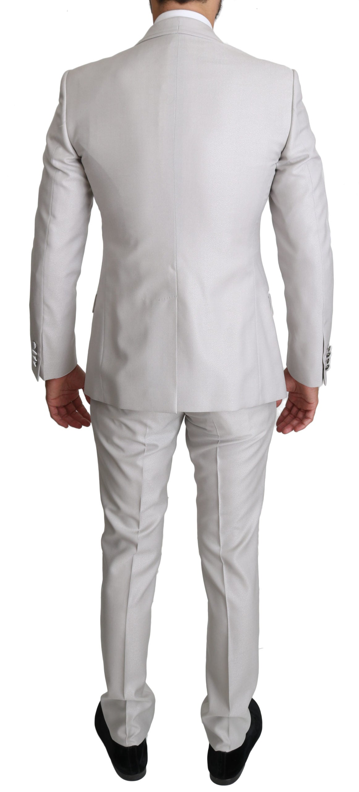 Silberner einreihiger 3-teiliger Anzug aus Wolle