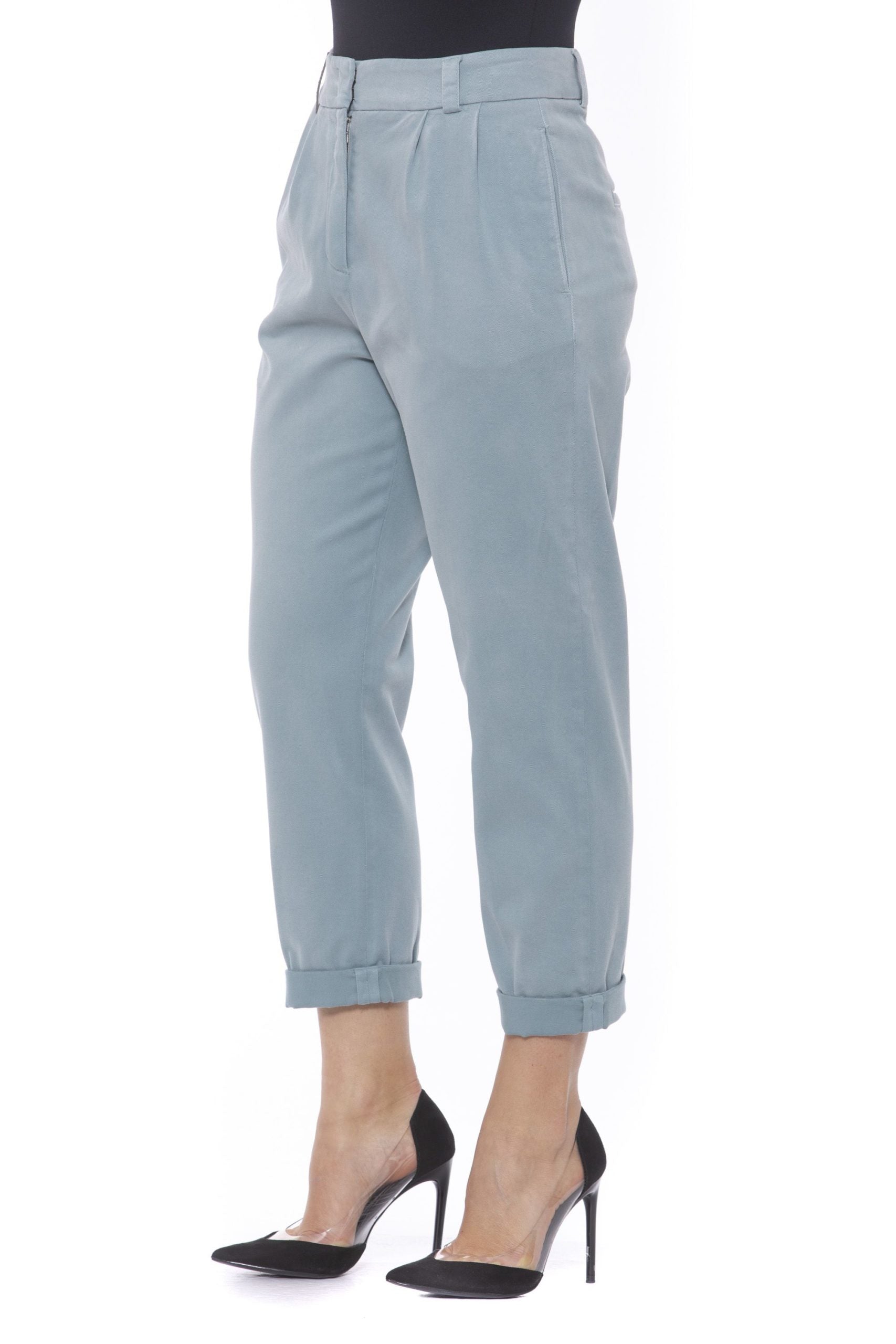 Hose mit hoher Taille und Pailletten. Zwei Fronttaschen und zwei eingefasste Gesäßtaschen. Umschlag an den Knöcheln. Reißverschluss und versteckte Haken. Leicht weiche und weite Passform.