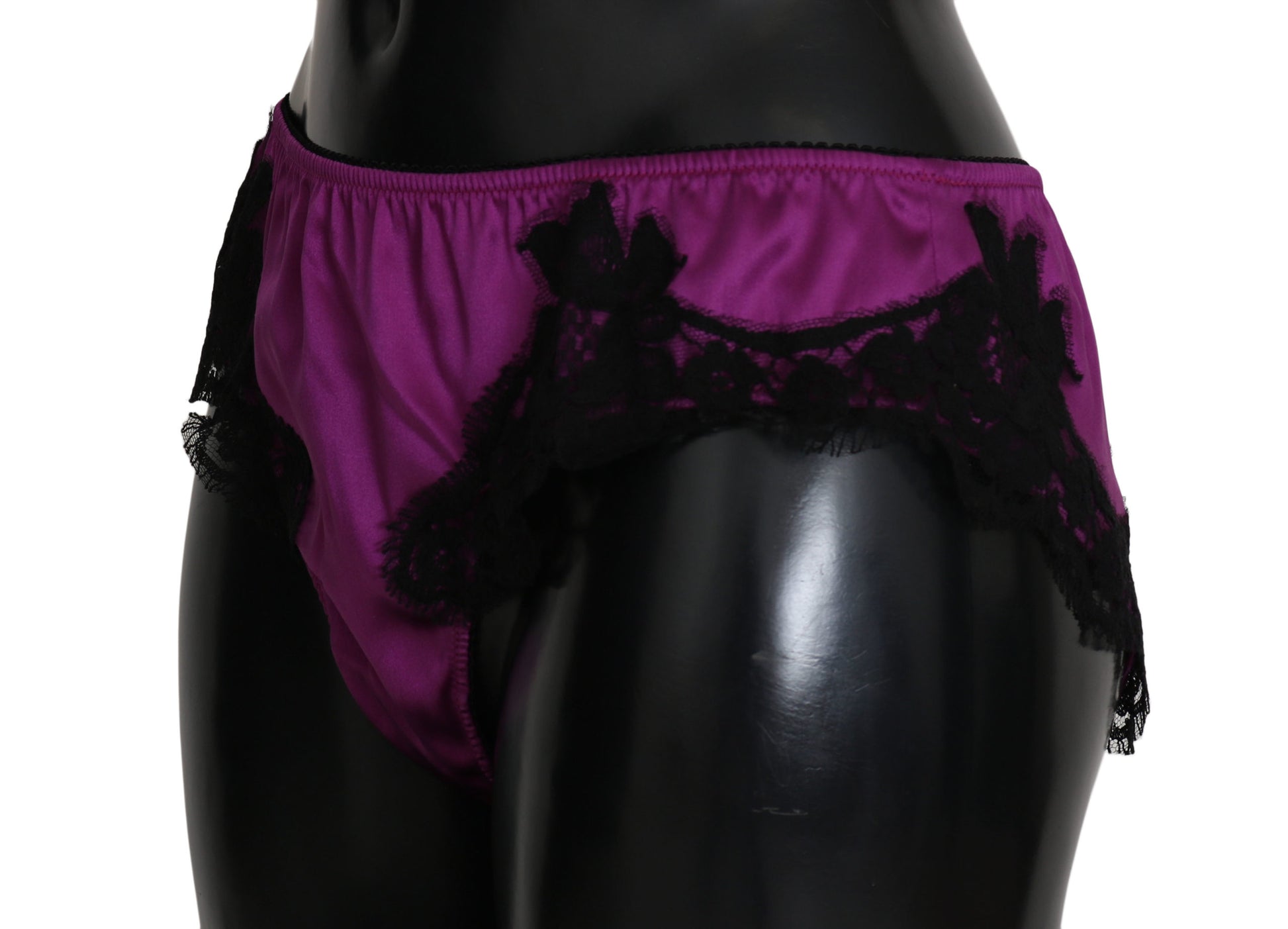 Gorgeous brandneue mit Tags, 100% Authentic Dolce & Gabbana Lila mit Black Floral Lace Stretch Damenunterwäsche.