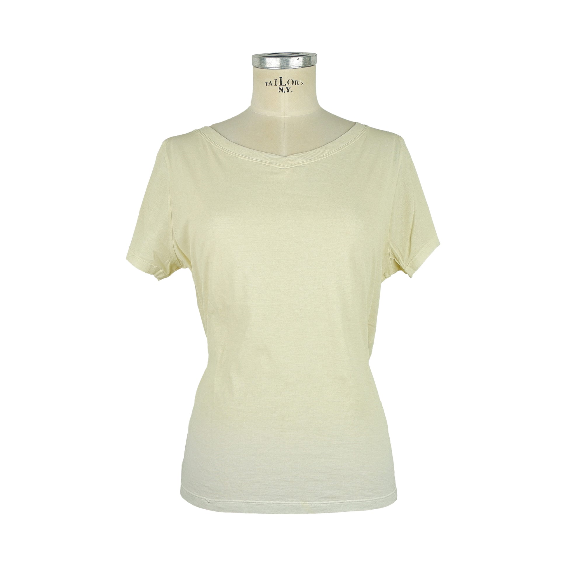 Jacob Cohen Damen T-Shirt mit kurzen Ärmeln aus elfenbeinfarbener, weißer Baumwolle mit weißem Farbverlauf an der Unterseite, V-Ausschnitt. In Italien hergestellt