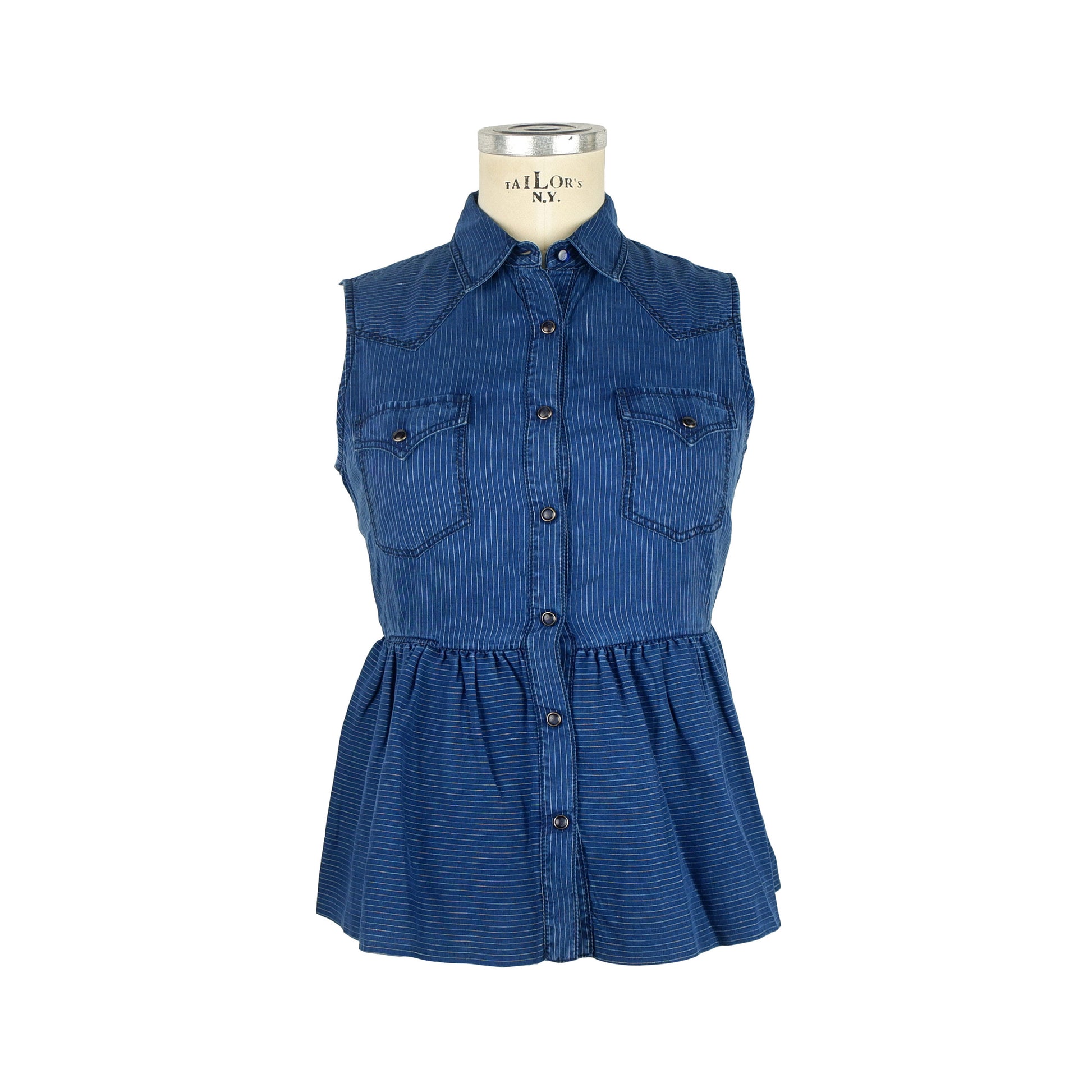 Jacob Cohen ärmellose Damenbluse aus blauem Lyocell mit weißen Streifen und Brusttaschen. In Italien hergestellt
