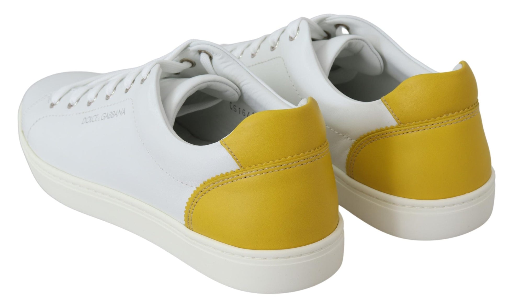 Weiß Gelb Leder Low Top Turnschuhe Schuhe