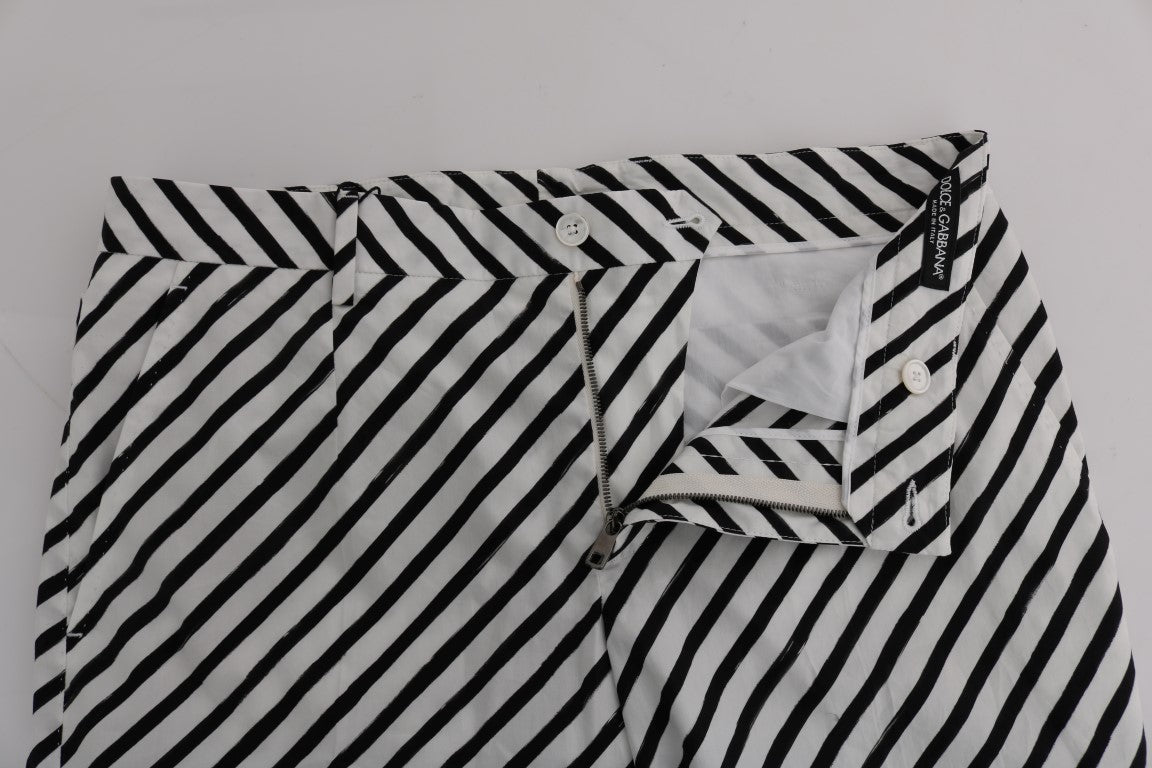 Weiß-schwarz gestreifte Slim Fit Hose aus Baumwolle