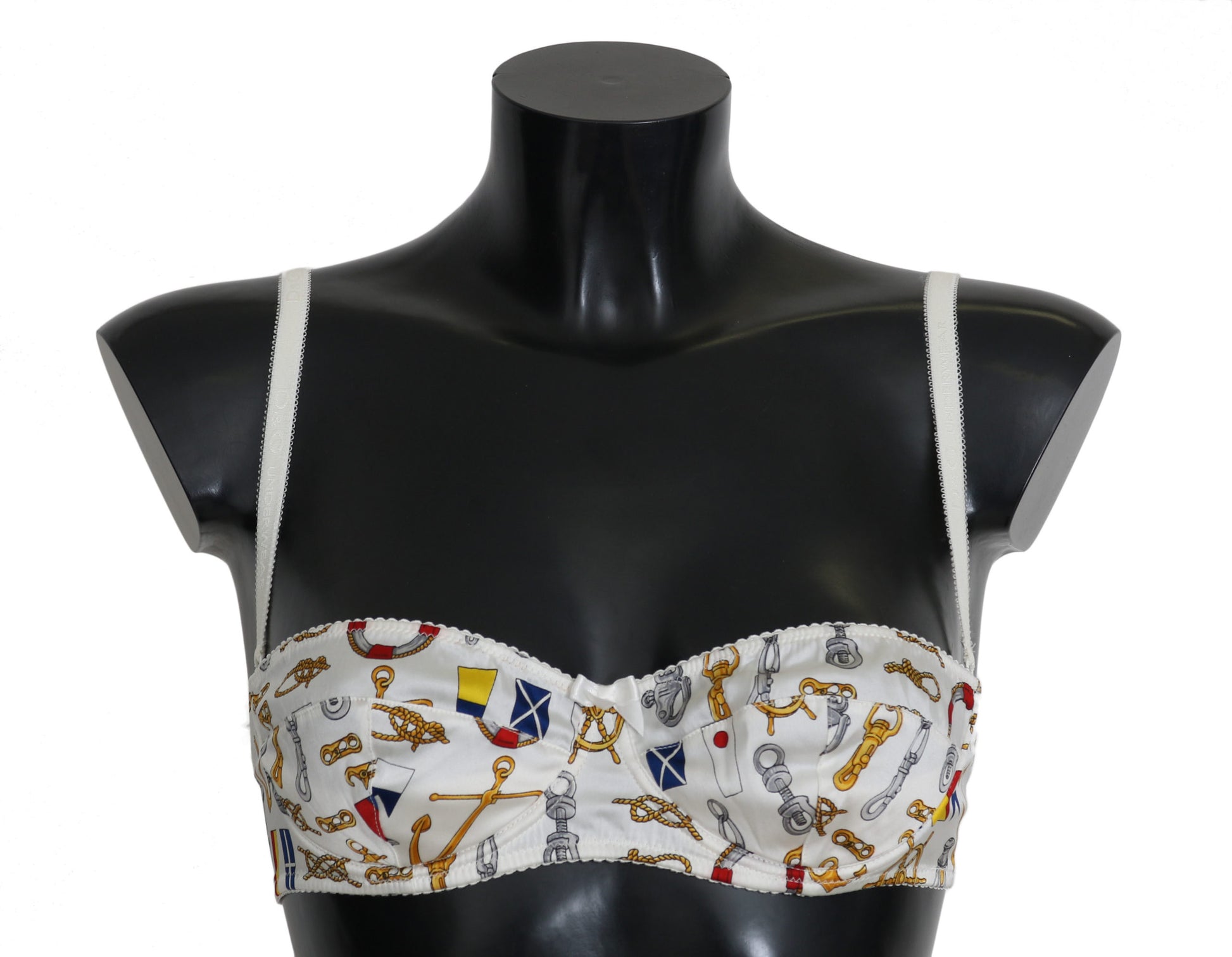 Wunderschöne brandneu mit Tags, 100% Authentic Dolce & Gabbana Weiß Seemann Print Stretch-BH für Damen Unterwäsche.